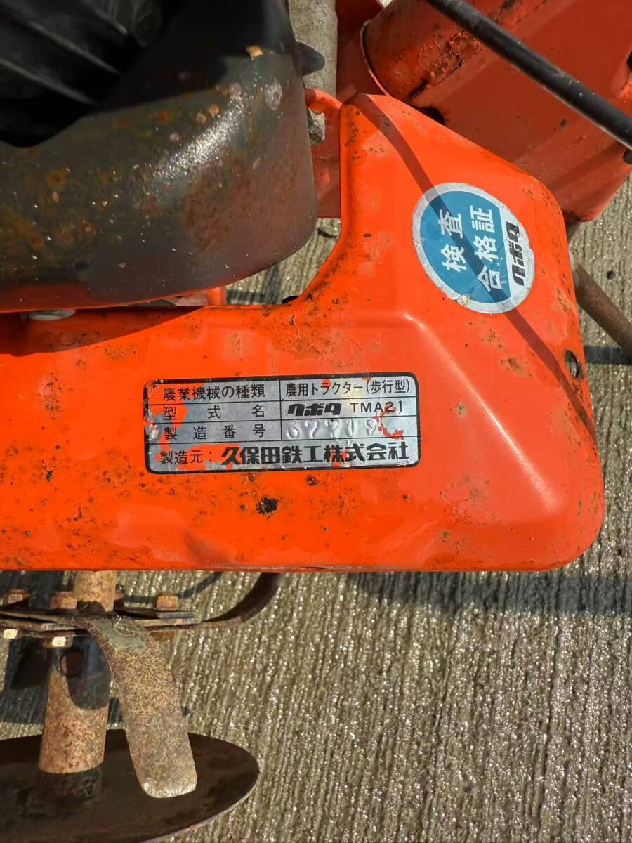 【福岡県みやま市】管理機 耕運機 クボタTMA21 最大馬力2.2ps