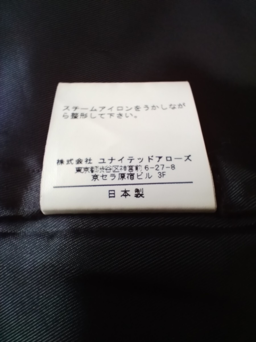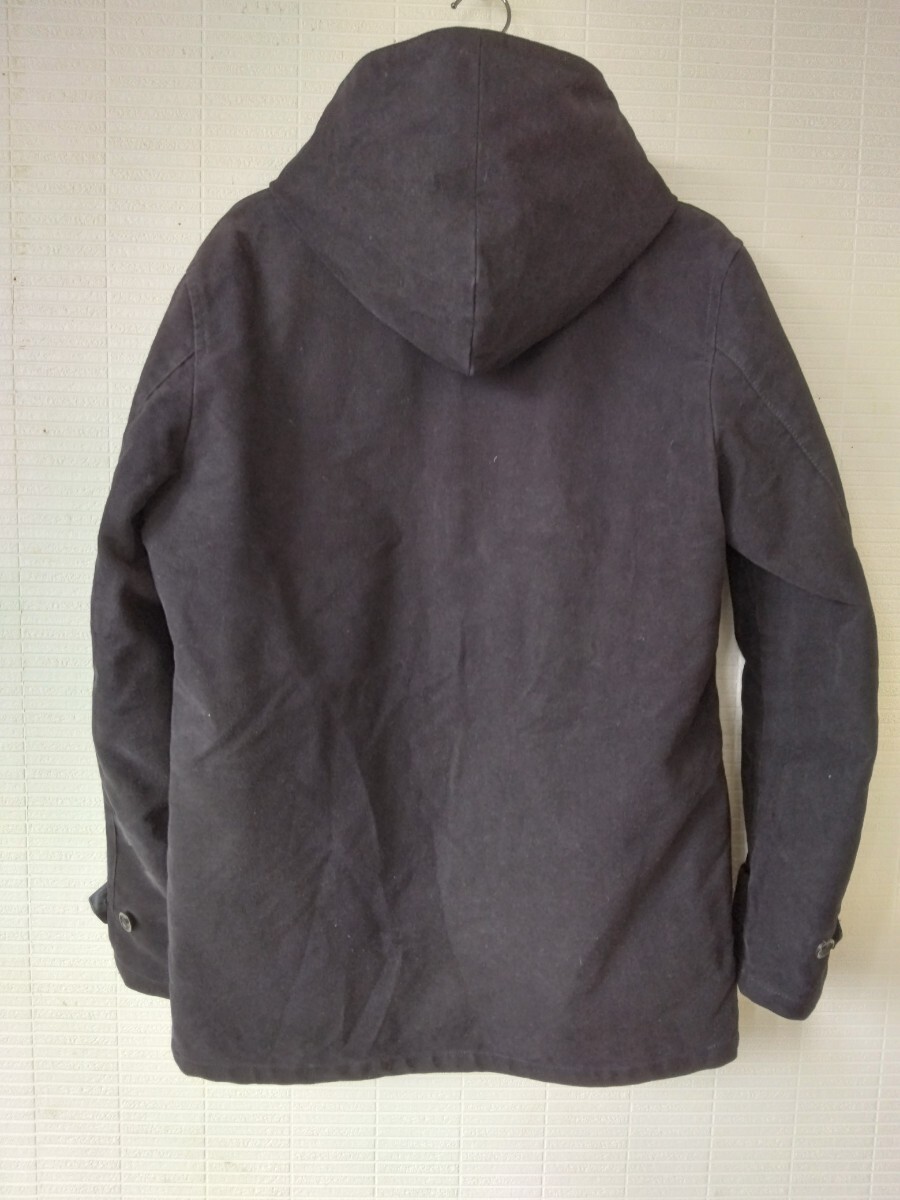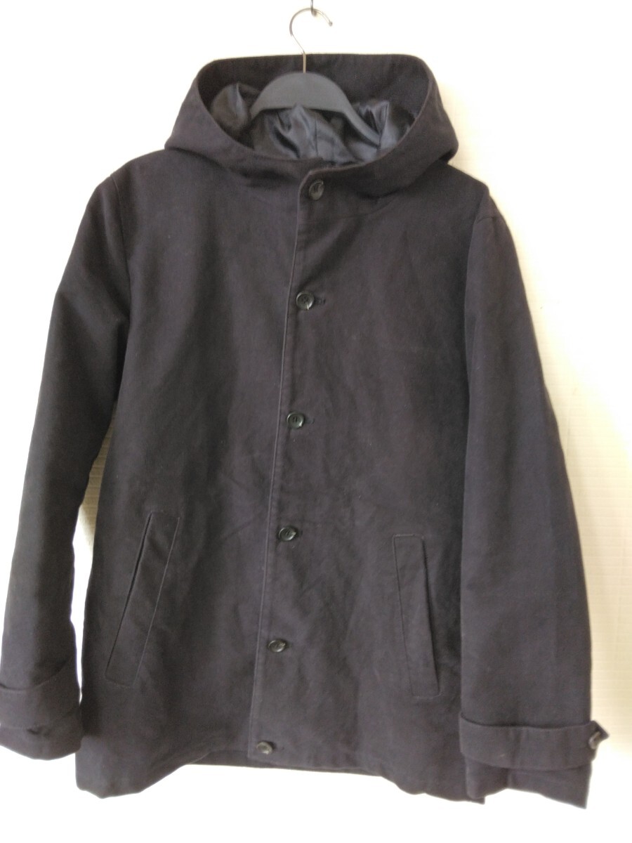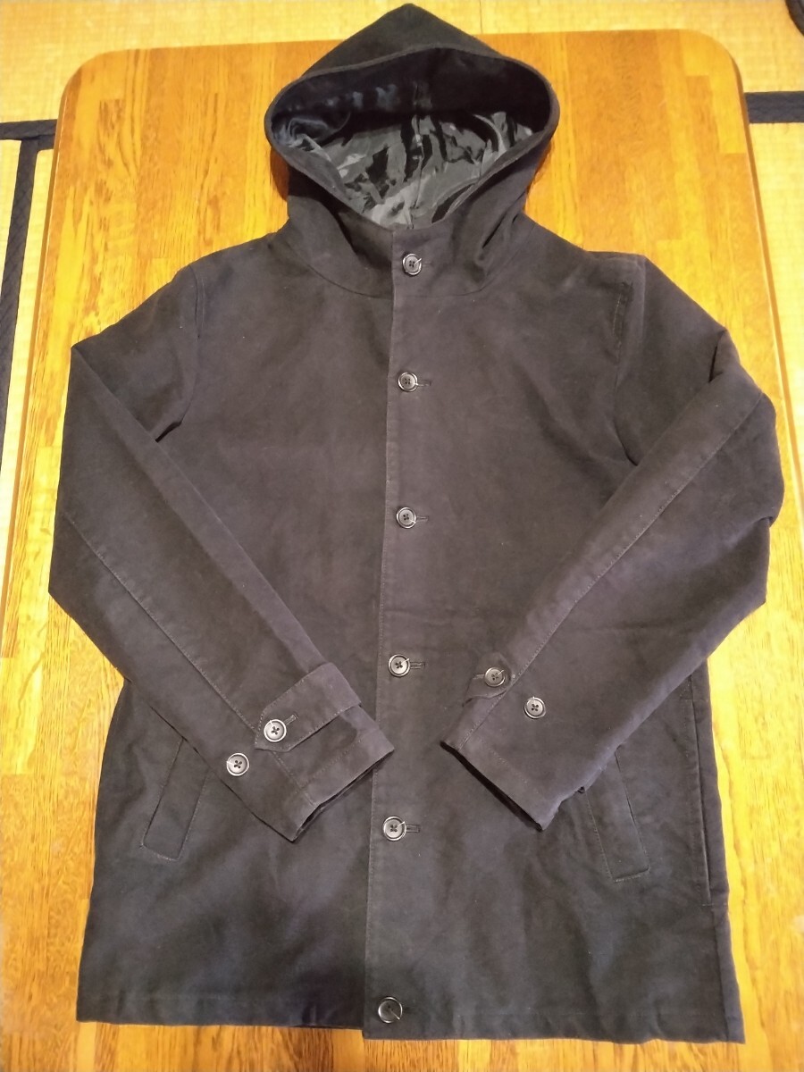 ユナイテッドアローズのフーデッドジャケットです。生地はモールスキンで厚手で頑丈です。色は黒、サイズはMですが、実寸を参照してください。