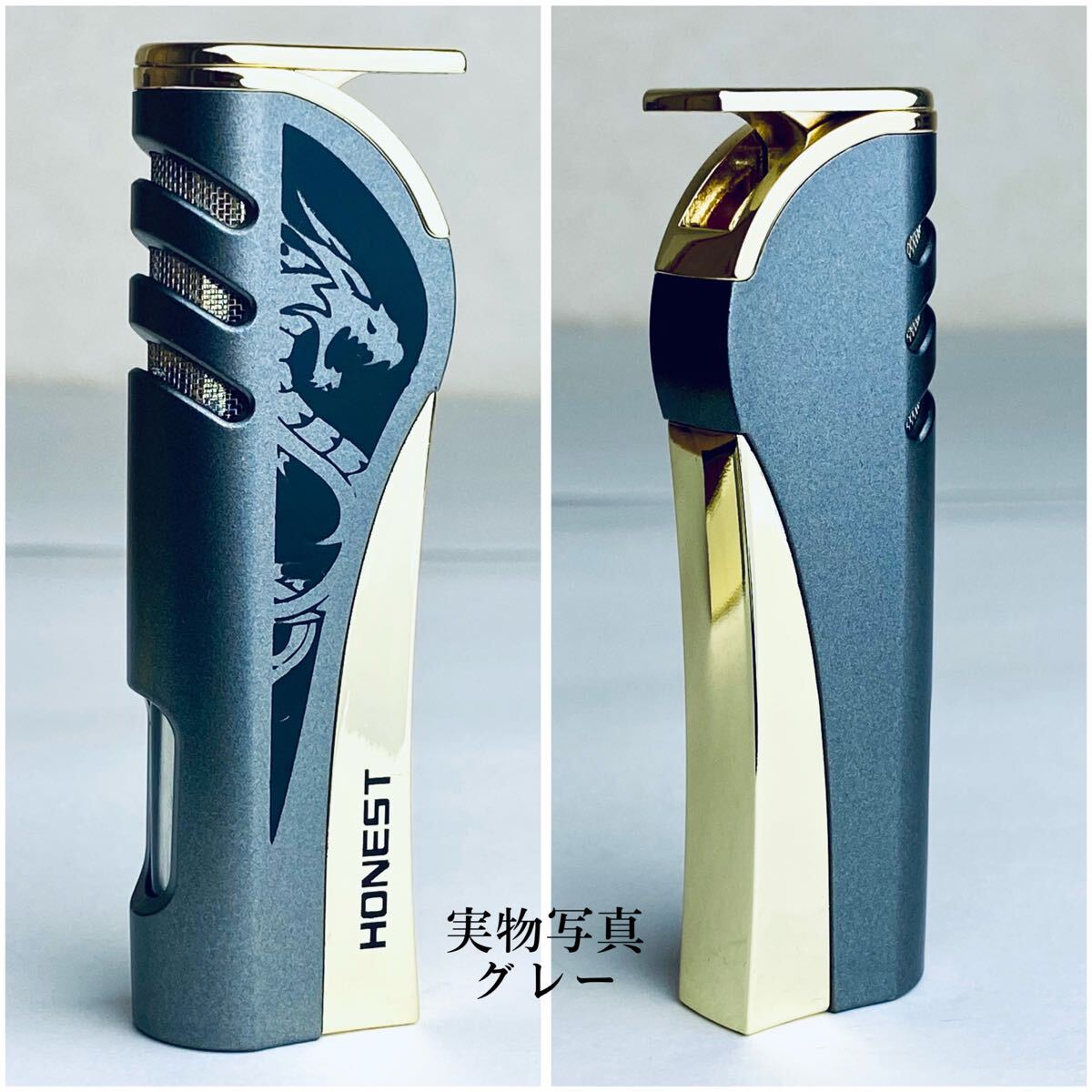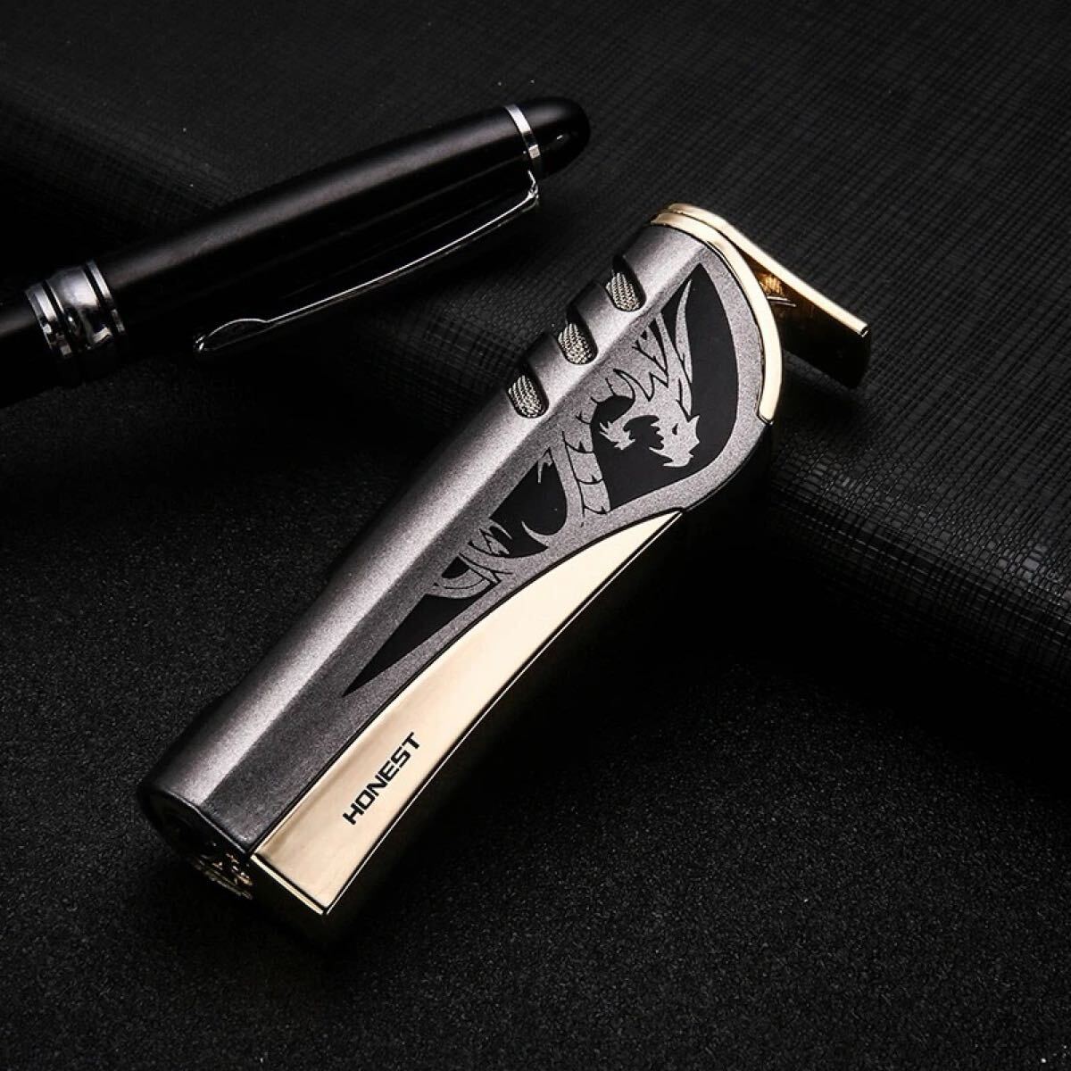 HONESTブランドのガスライター(ターボライター)は、洗練された「ドラゴン」デザインを採用し、力強くスタイリッシュな雰囲気を演出。さらに、「龍脊」造型の金属グリップがデザインのアクセントとなり、高級感と実用性を兼ね備えています。
