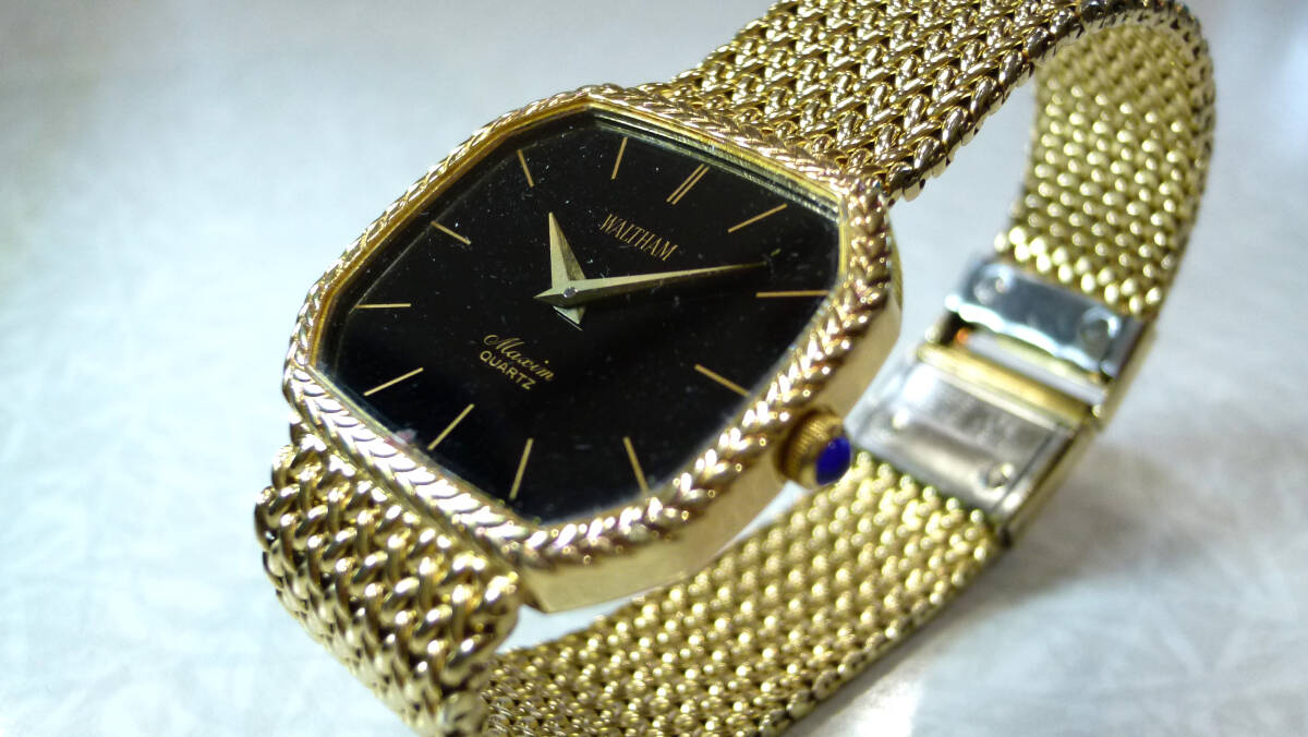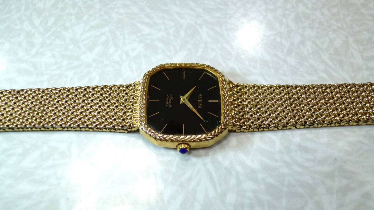 WALTHAM ウォルサム Maxim QUARTZ 1/20 12K GF メンズ クオーツ 腕時計 金張り ゴールド 黒文字盤 2針 クオーツ SWISS スイス製正規品