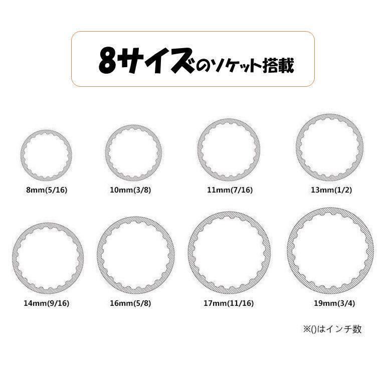 8(5/16)・10(3/8)・11(7/16)・13(1/2)・14(9/16)・16(5/8)・17(11/16)・19(3/4)mm(inch)