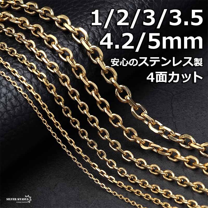 ネックレスの中でも定番人気のあずきチェーンネックレス!4面カットが光を反射し、キラキラと輝きます。ペンダントを通して使うのはもちろん、そのままネックレスとして使用してもオシャレです。