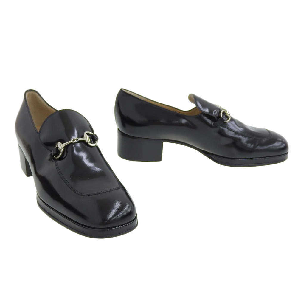 | 箱付未使用 グッチ 100 0413 ホースビット ボックスカーフレザー ヒール ローファー ドレス シューズ 38 24.5-25cm 黒 希少 レディース 旅 |