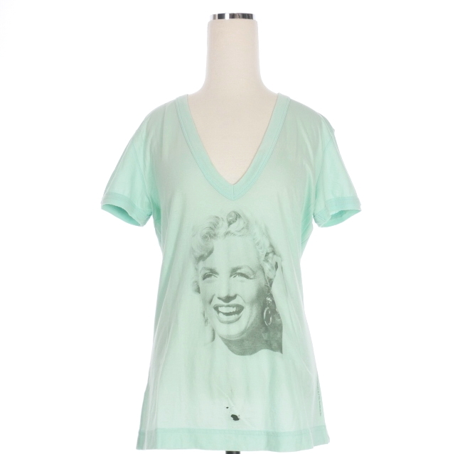 ドルチェ&ガッバーナ ドルガバ DOLCE&GABBANA マリリンモンロー Vネック プリントTシャツ カットソー 半袖 42 ターコイズ ブルー 青