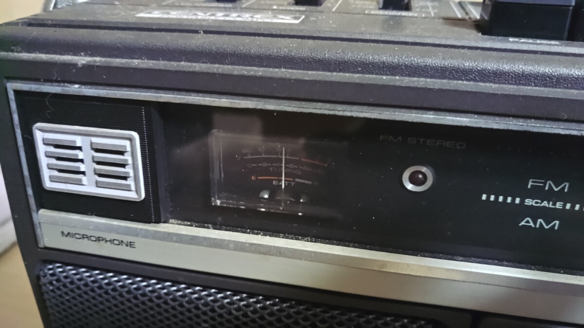 電池蓋欠品。手持ちのアダプター(付属しません)で通電確認済み。ラジオの音がでましたが、音量調整うまくできません。ジャンク扱い、画像にて判断できる方、ノークレームノーリターンにてお願いします。