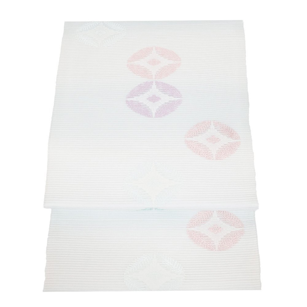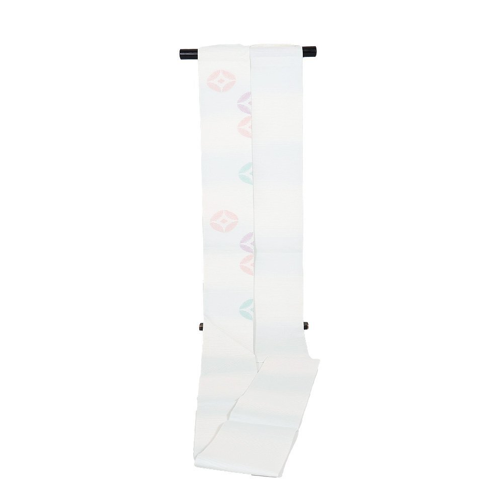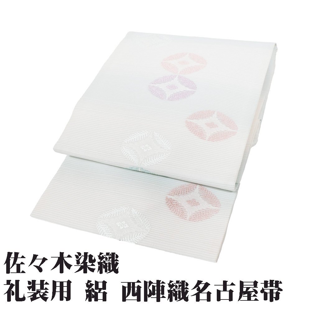 | 佐々木染織謹製 西陣織 九寸名古屋帯 白・ライトグリーン地 唐織・七宝文 新品 仕立て上がり | |