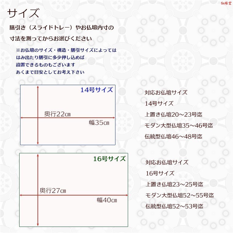 ※お仏壇のサイズ・構造・膳引サイズによっては