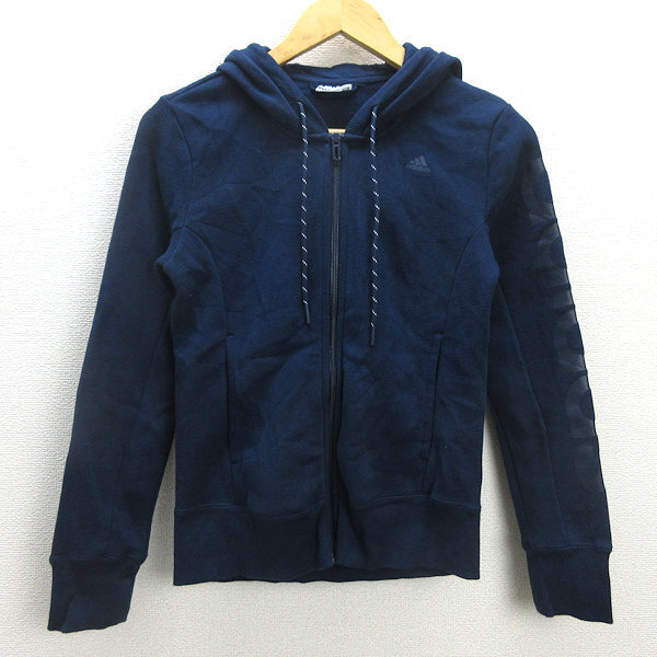 G■アディダス/adidas ESSENTIALS フルジップパーカー/AY4812【L】紺/LADIES/32【中古】■