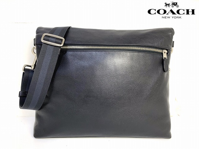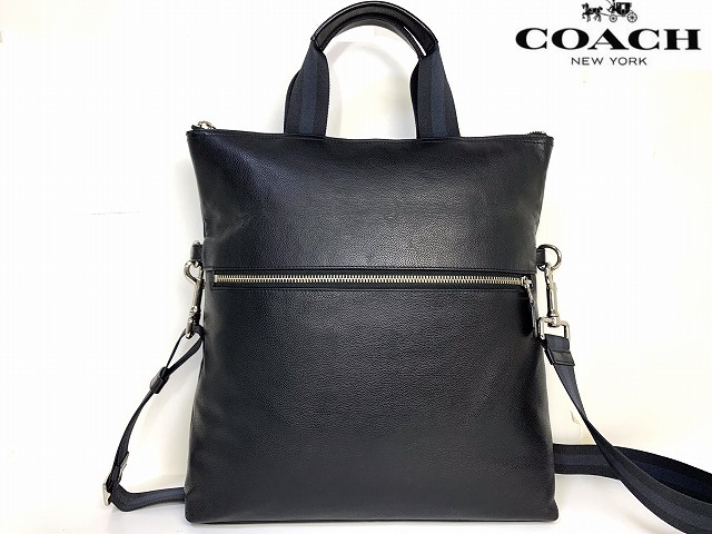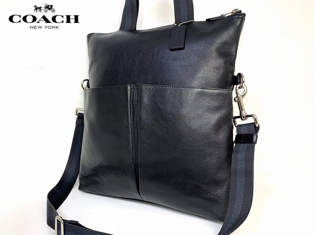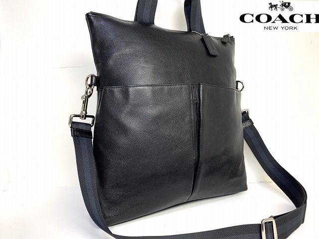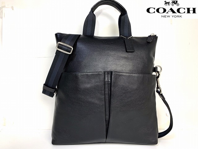 美品★送料無料★ コーチ メンズ COACH レザー フォルド オーバー 2Way ショルダーバッグ トートバッグ ビジネストート ブラック