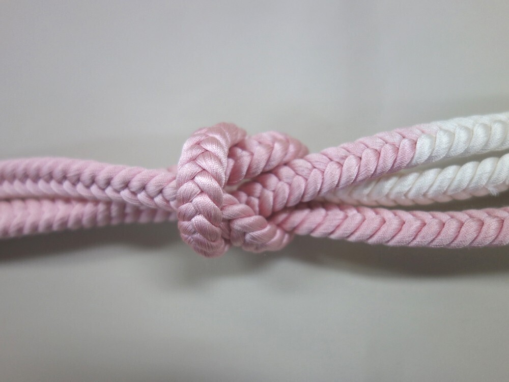 着物物語■K60807-10■中古美品 帯締め 手組 丸組 薄ピンク×白・