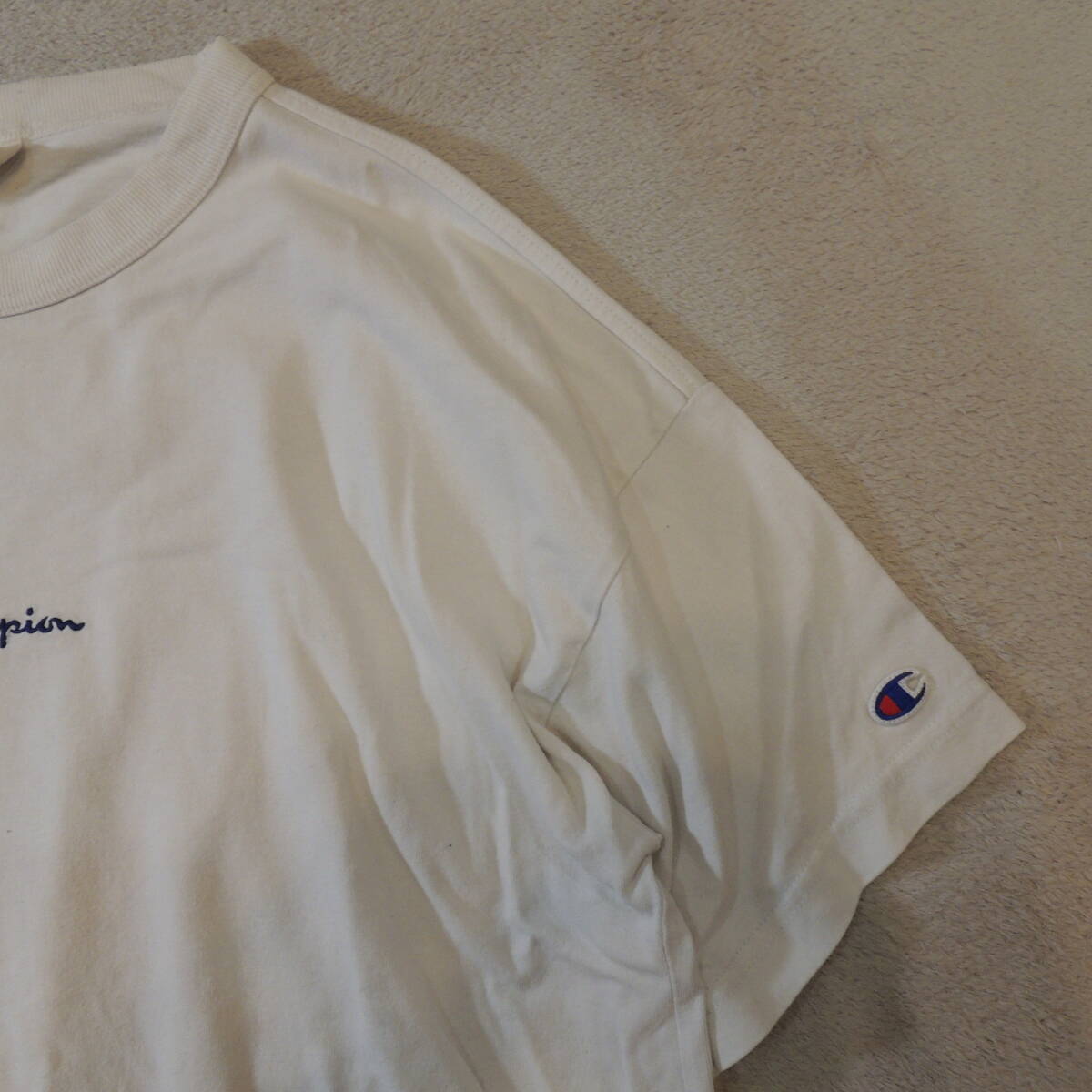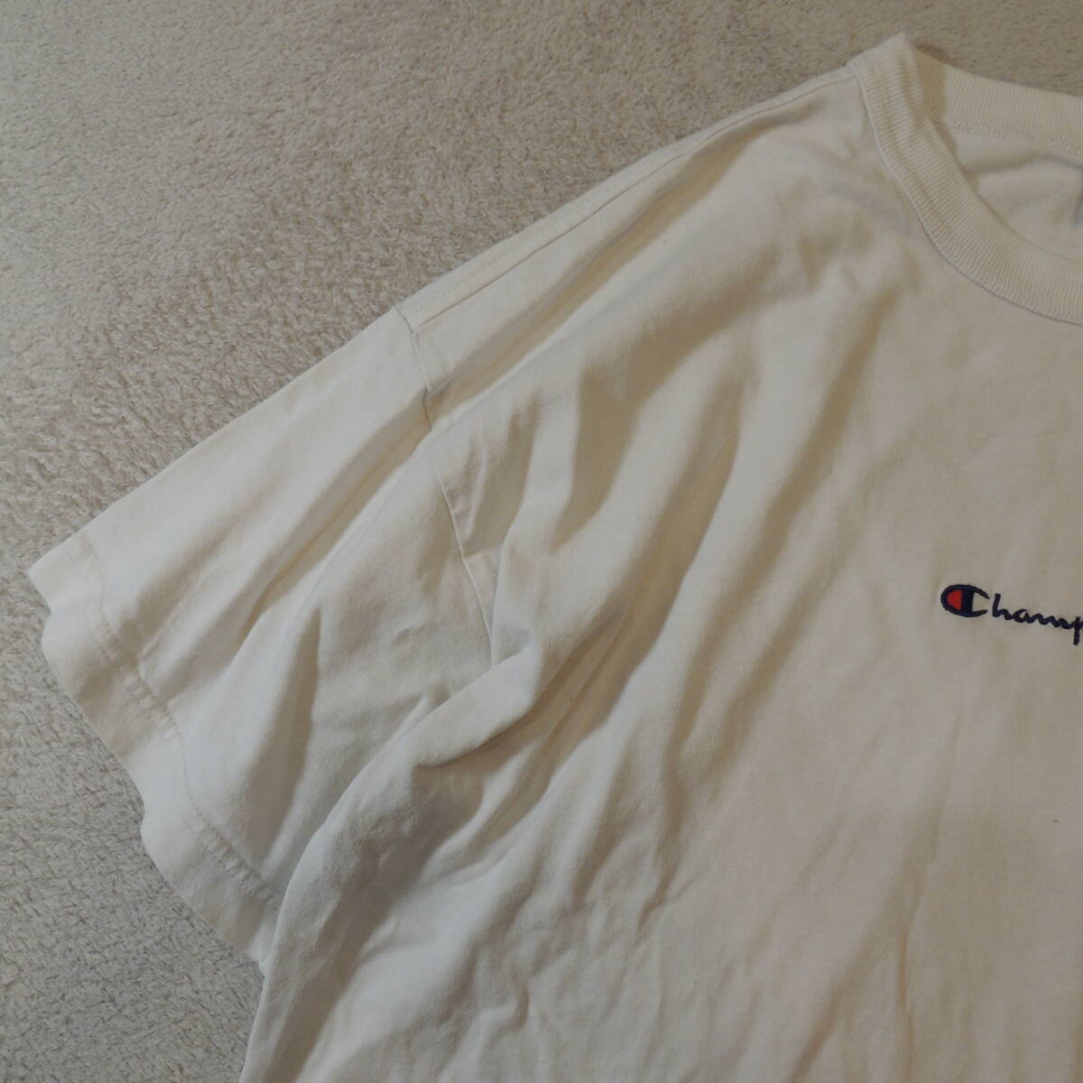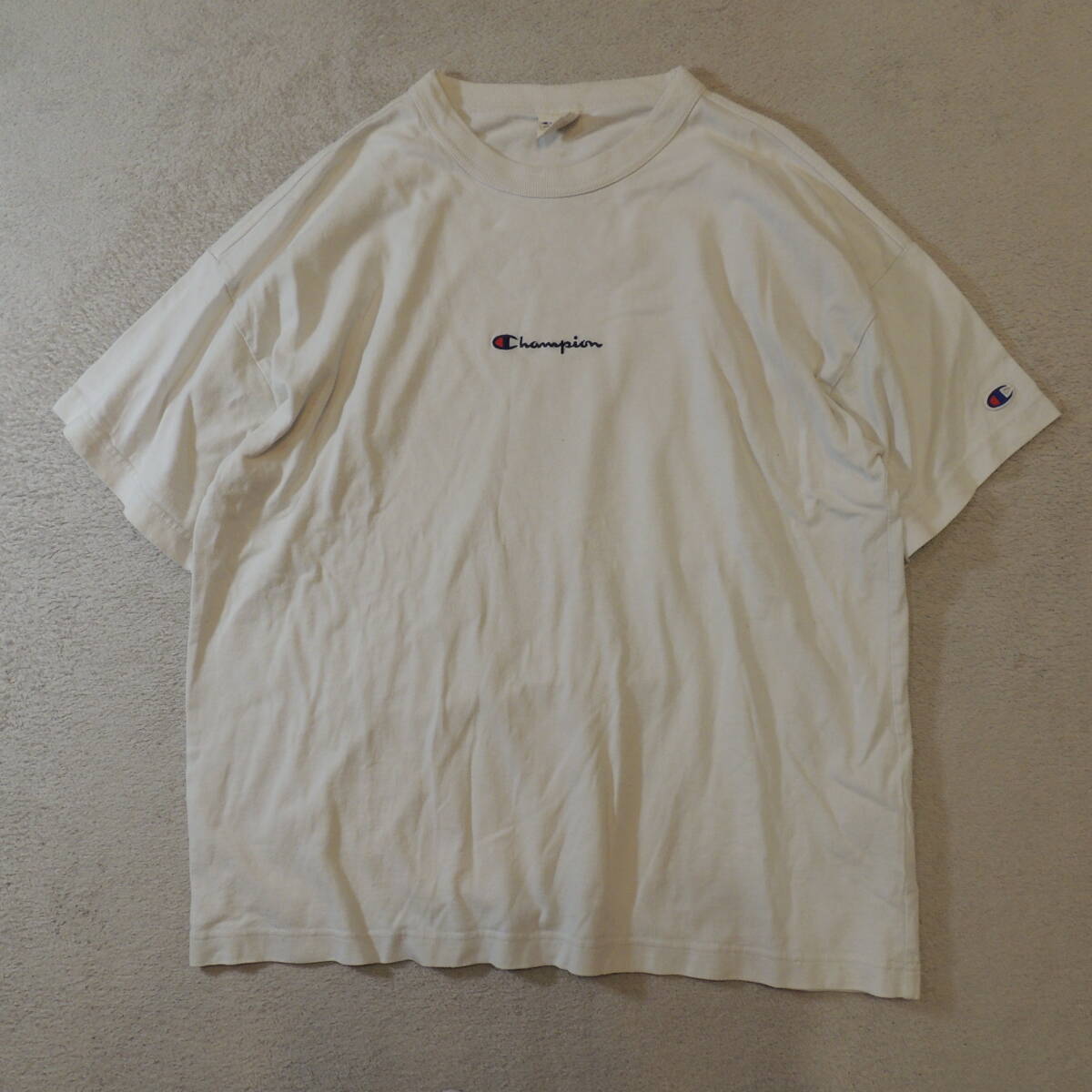 champion チャンピオン クルーネック センター刺繍ロゴ バックビッグロゴ 半袖Tシャツ 純白 ホワイト JPメンズL 状態良