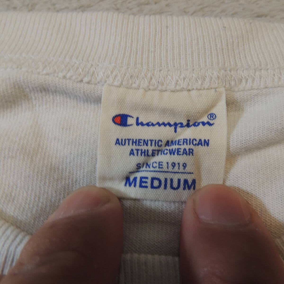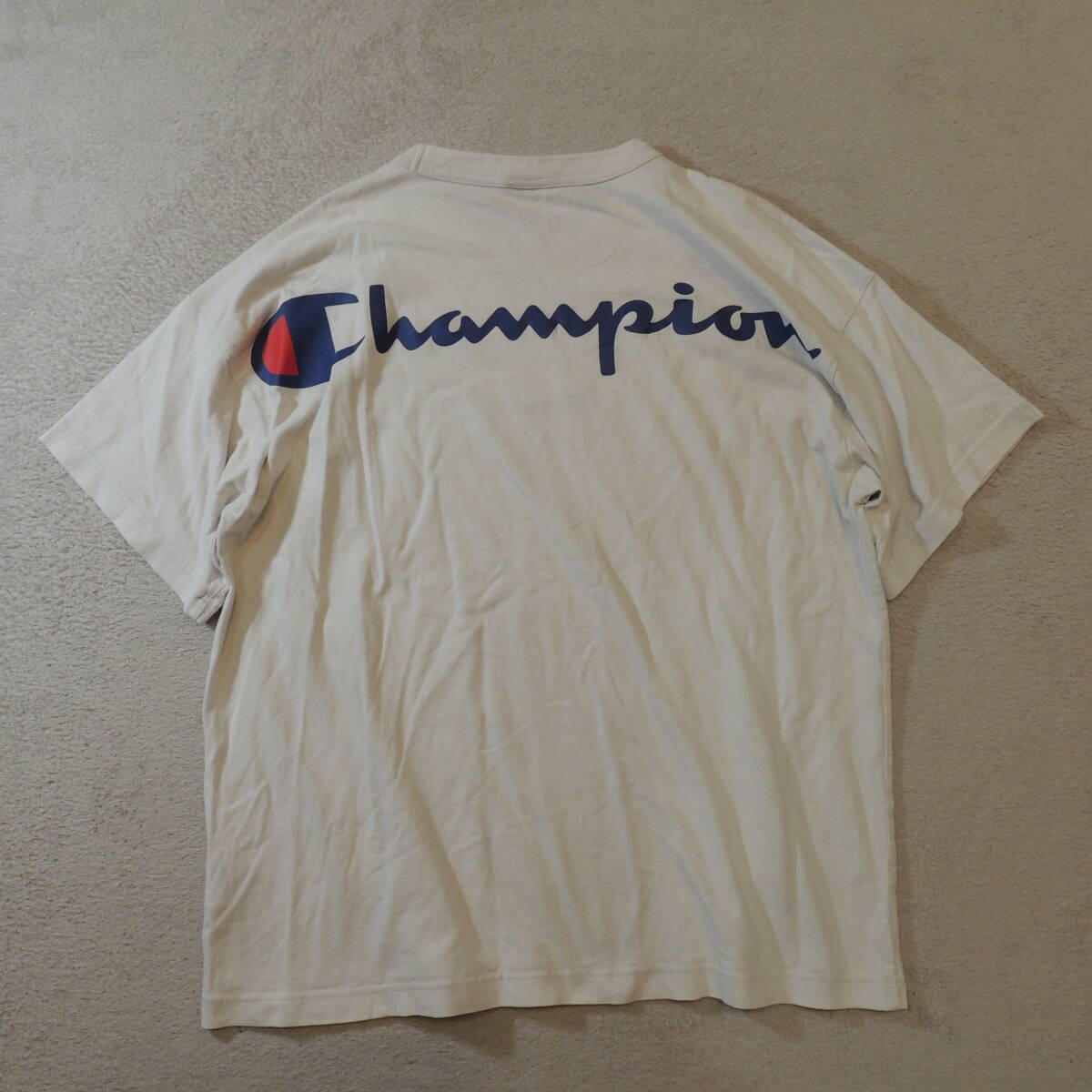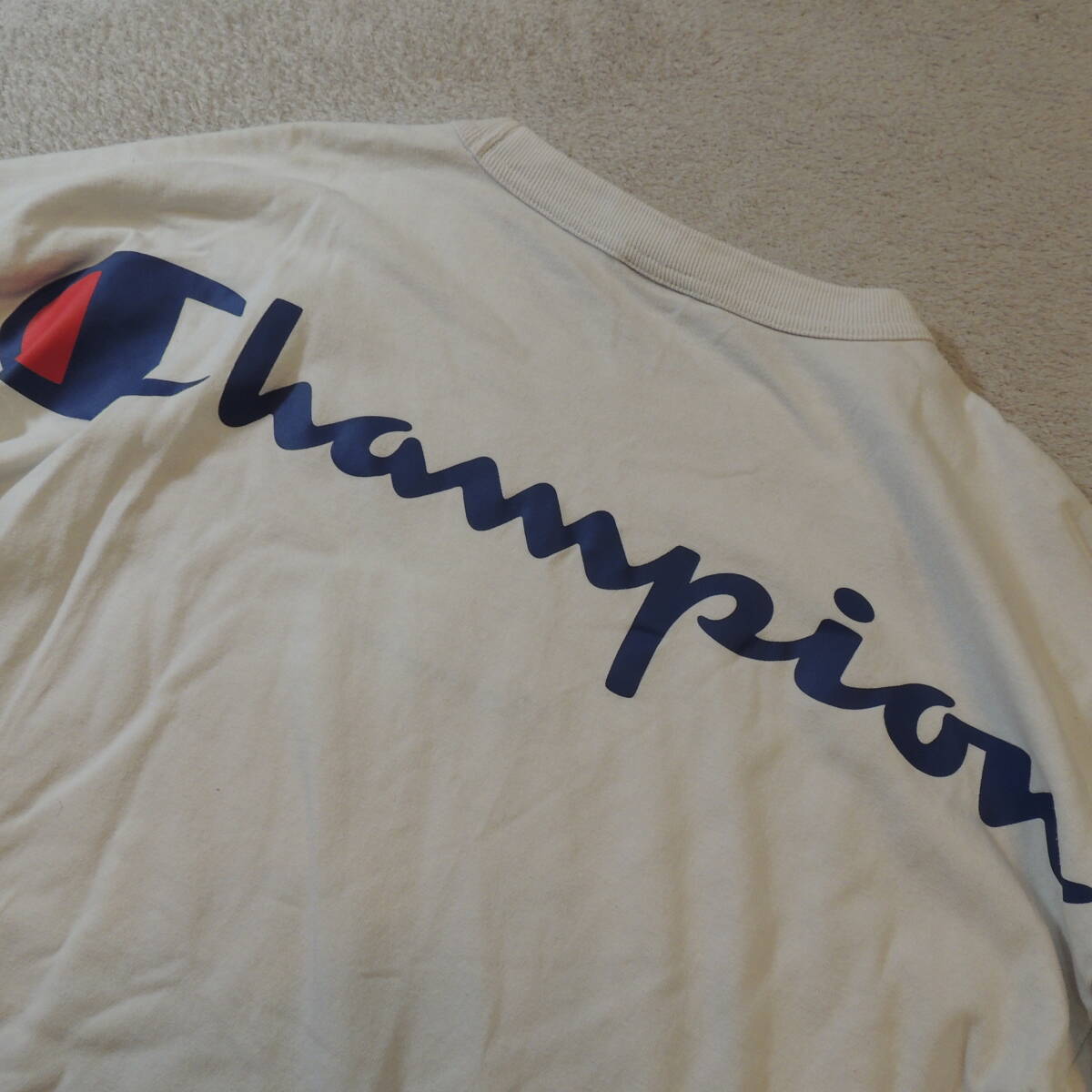 champion チャンピオン クルーネック センター刺繍ロゴ バックビッグロゴ 半袖Tシャツ 純白 ホワイト JPメンズL 状態良