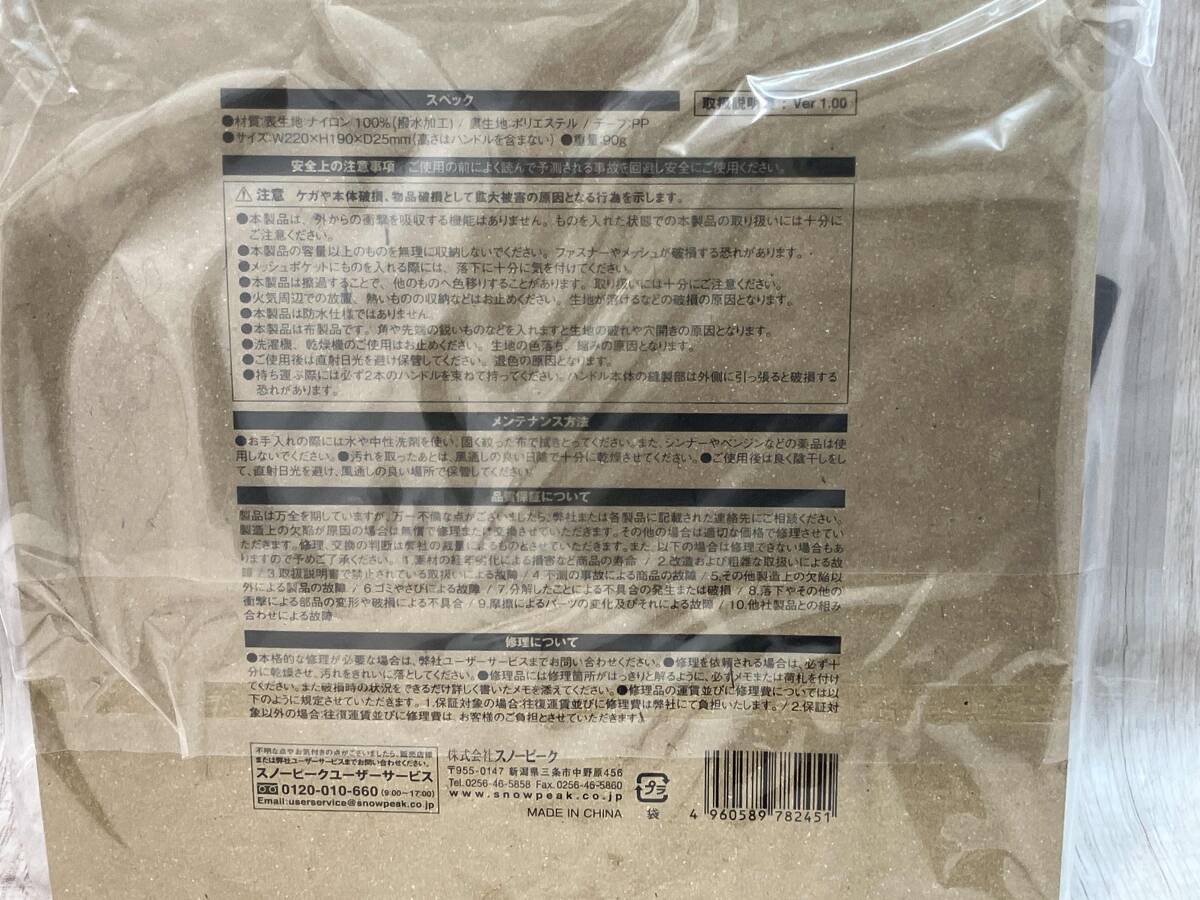 snowpeak バックのサイズ 縦 実寸19cm 横 実寸22cm 高さ 実寸1.5cm サイズ(台紙込み) 縦 実寸21cm 横 実寸22cm 高さ 実寸3cm 画像のものが全てです。 |