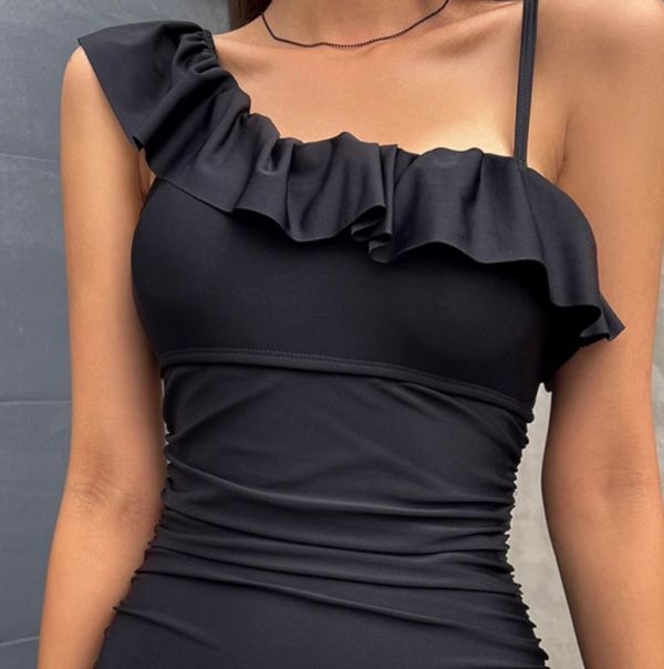 レディース 水着 ワンピース ハイウエスト フレアショルダー GY39