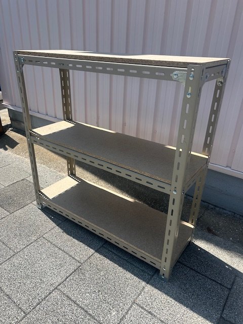 ○アングルボード棚 ○寸法:H900×W900×D300 天地3段(枚) ○色:アイボリー色 ○セット内容 支柱アングル 40×40 900mm 4本 ワイドアングル 40×40×900mm 6本 奥行アングル 40×40×300 6本 ボルトナット6×12 44ヶ コーナープレート 8枚 ベースプレート 4枚 棚板 15mmパーティクルボード 900×300 3枚 法人、営業所止めに限り 送料無料!! ※発送の都合上解体して発送いたします。(横枠のみ組み立てた状態※完全に解体した状態での発送も可能)落札者様で組立をお願いします。(わからない場合メールや電話でサポートいたします) ※北海道・沖縄への発送は別途送料が加算されます。 ※個人宅への発送は別途送料が加算されます。 ※完成品での発送も対応可能(別途見積) 質問欄よりお問合せ下さいませ。 格安出品売切りです!! この機会をお見逃し無く!!! | ||||