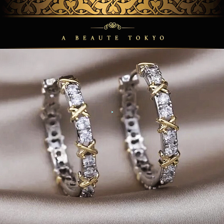アヴューテダイヤモンド(SONAダイヤ)のコンビカラー フープピアスです。