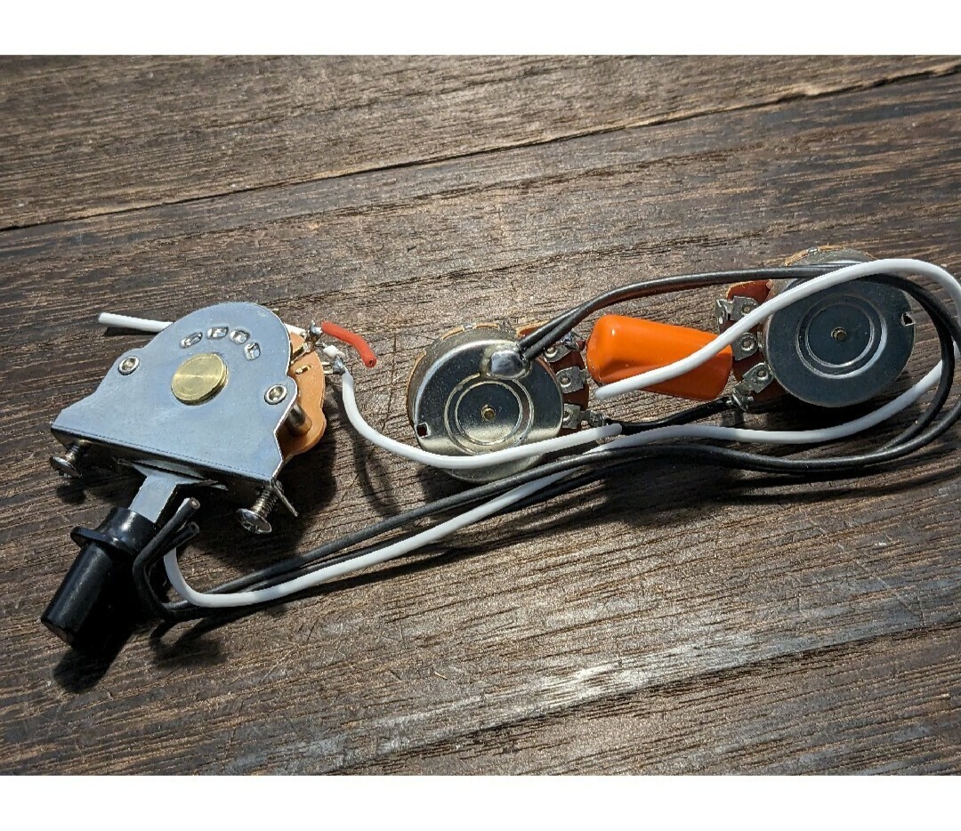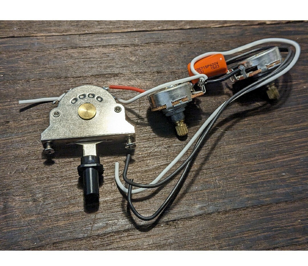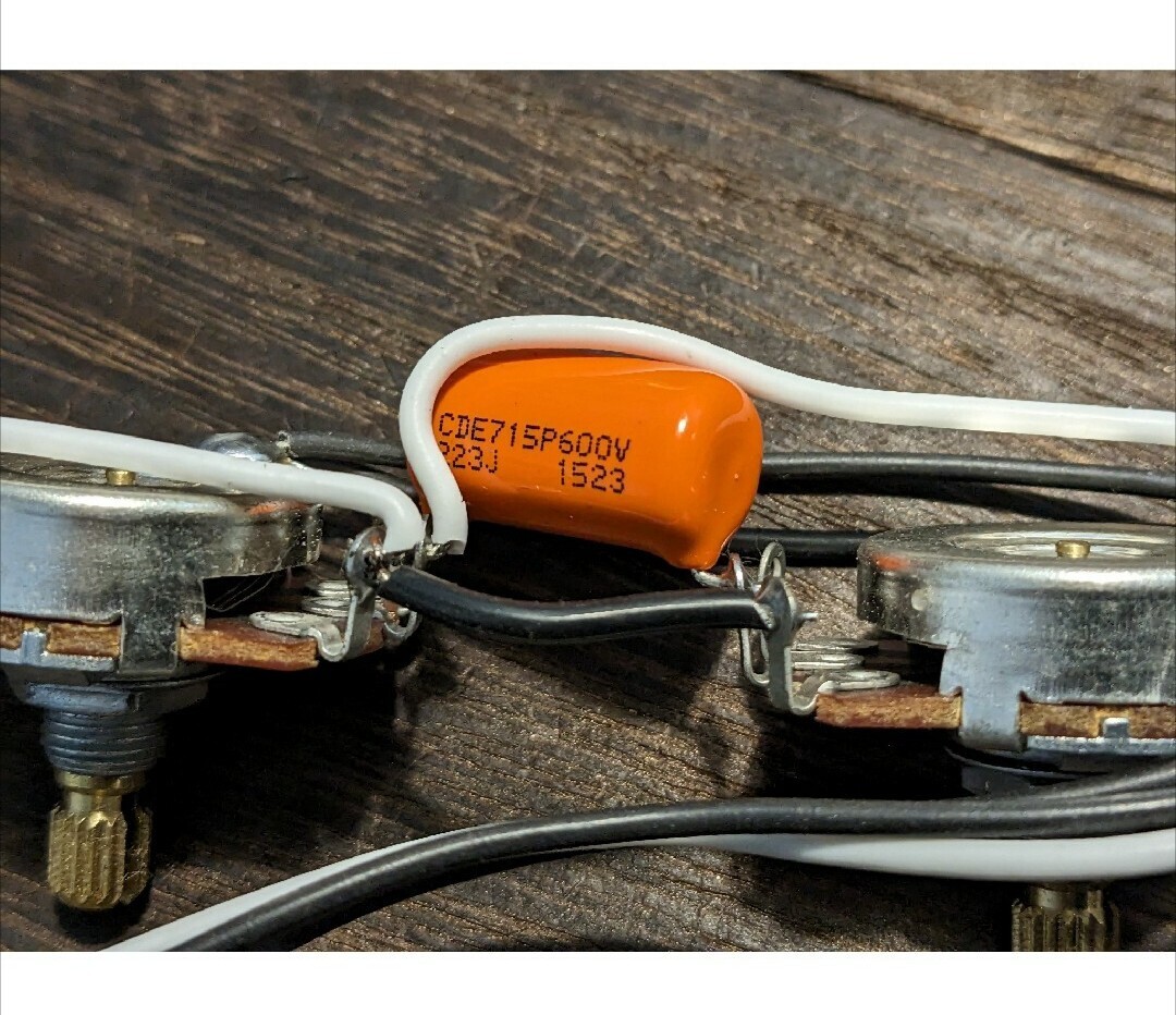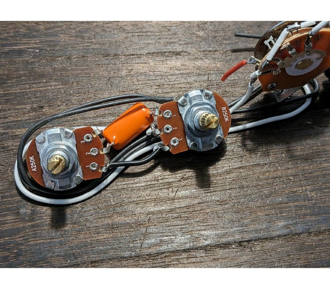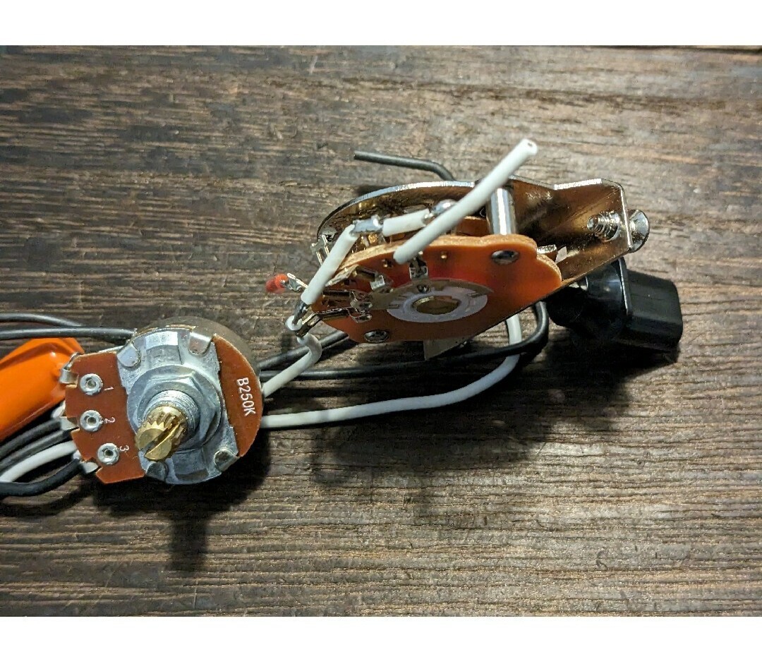 オレンジドロップに250kブラスシャフトポッド、アセンブリの配線材もしっかりしておりファットなサウンドが期待出来、グレードアップにおすすめです。