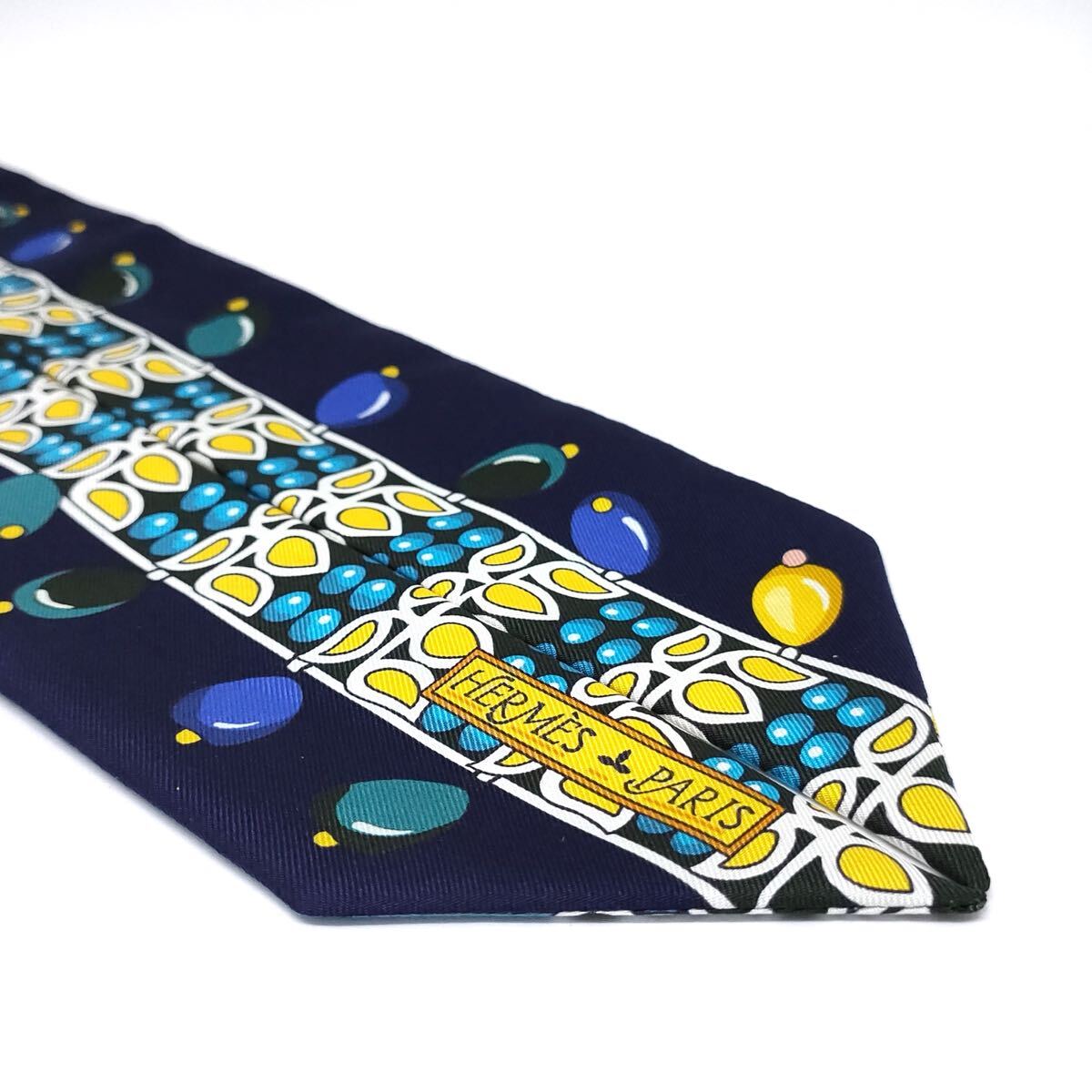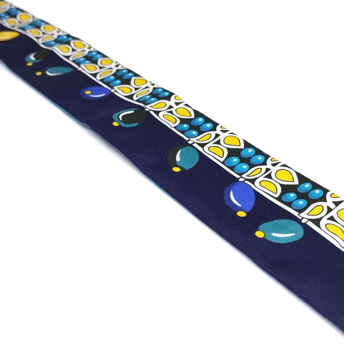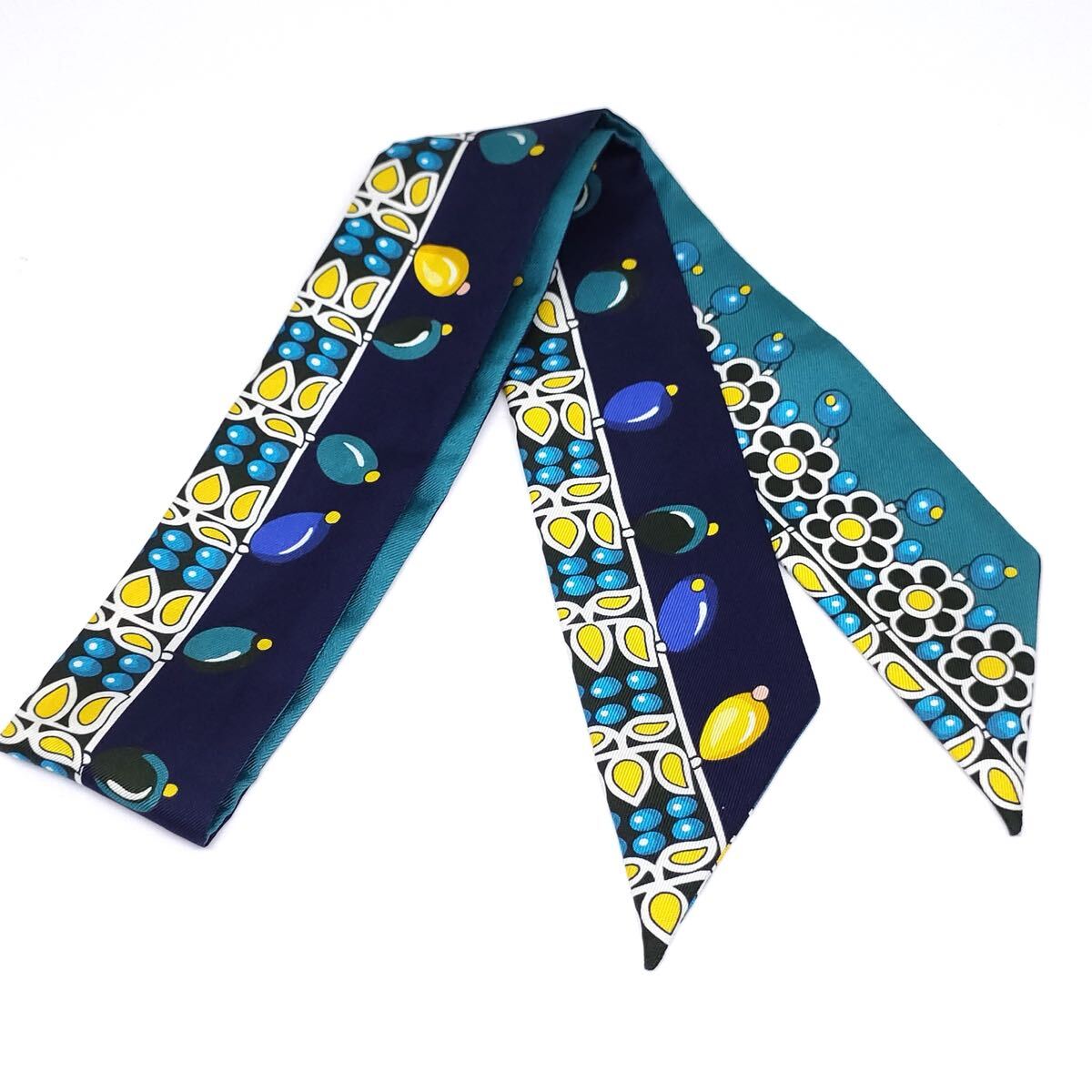 HERMES エルメス シルク ツイリー スカーフ PARIRES DES MAHARAJAS マハラジャの装身具 ブルー ネイビー グリーン リボンスカーフ