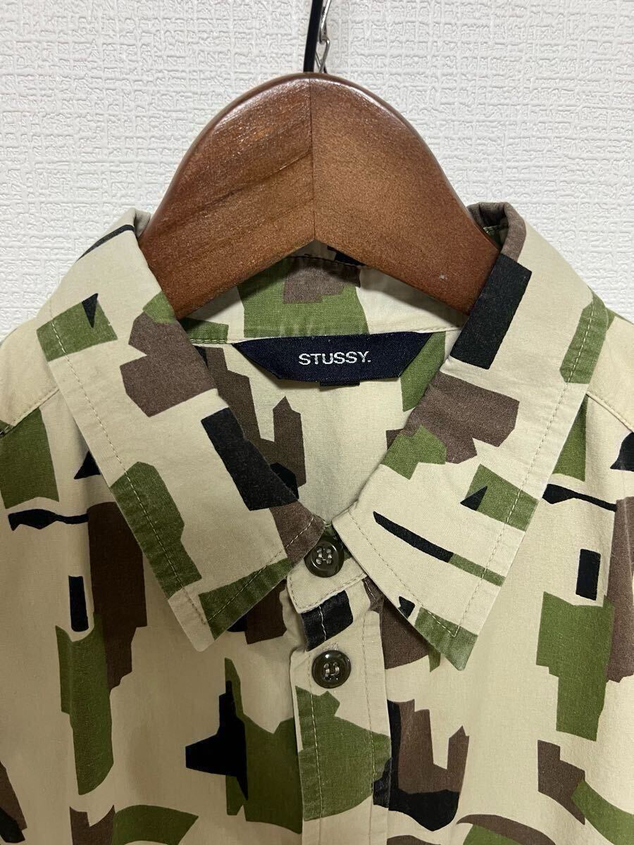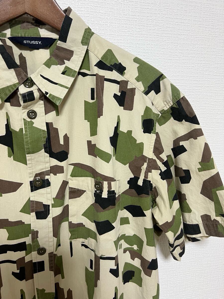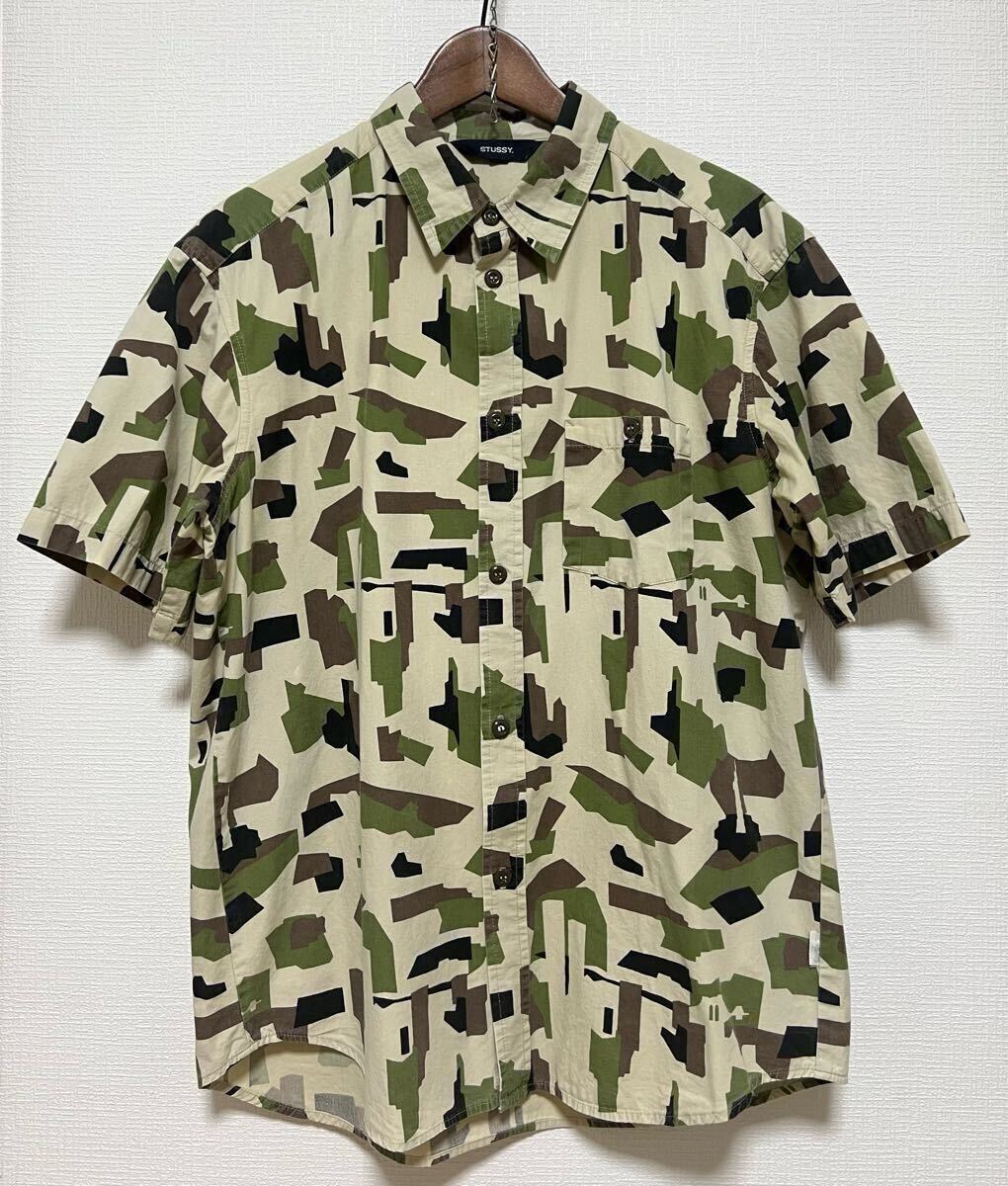 USA製 90s OLD STUSSY ステューシー 迷彩 カモフラ シャツ L 総柄 メンズ archive アーカイブ オールド vintage 紺タグ 半袖シャツ