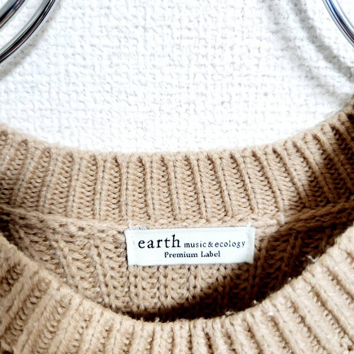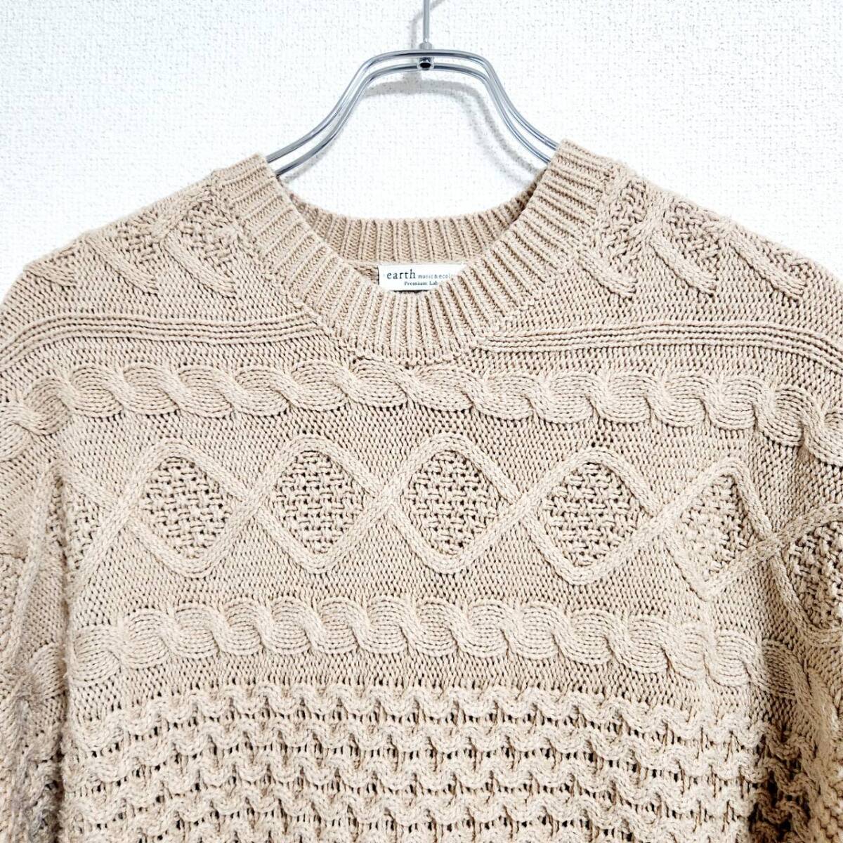 アースミュージックアンドエコロジー ベージュ ニットワンピース F ケーブル編み