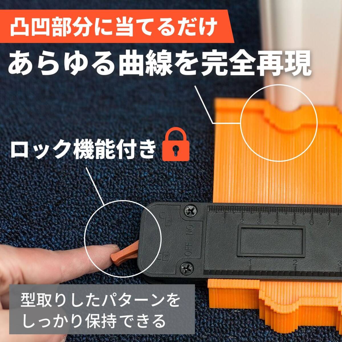このスクライビング定規は、曲線定規や雲形定規としても使用可能な型取りゲージです。形状コピーゲージとして、DIYや建築の現場での形状トレースが簡単に行えます。ロック付きで、測定した形状をしっかり保持し、製図やマーキングに役立ちます。家庭用としても、プロの現場でも、あらゆる形状のトレースとコピーが可能な便利ツールです。
