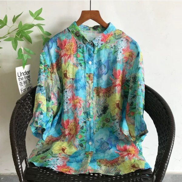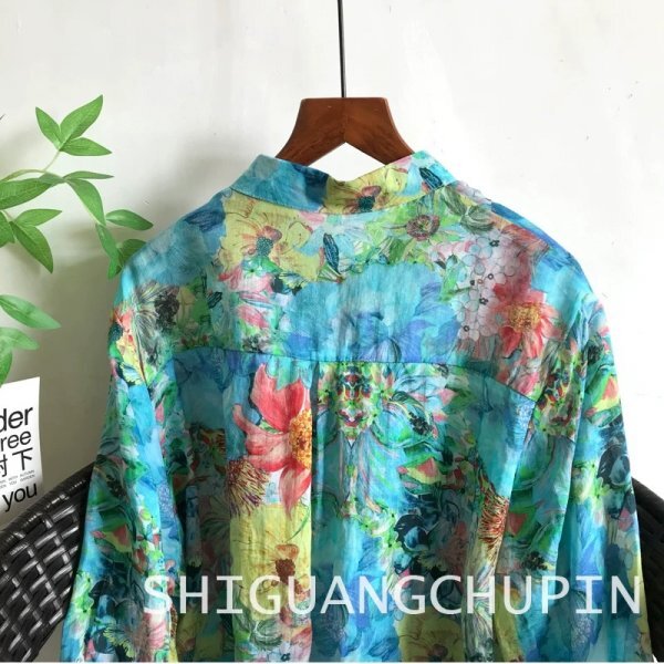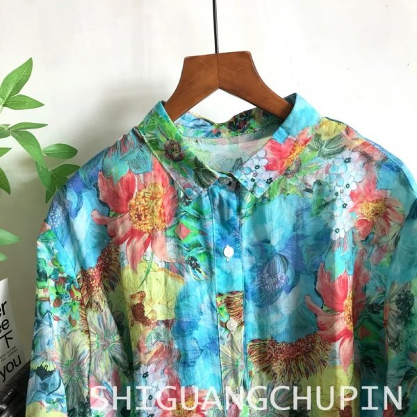 sg 0706 チュニック ワイシャツ トップス 花柄 麻100% ゆったり オシャレ フリーサイズ ナチュラル カラー3