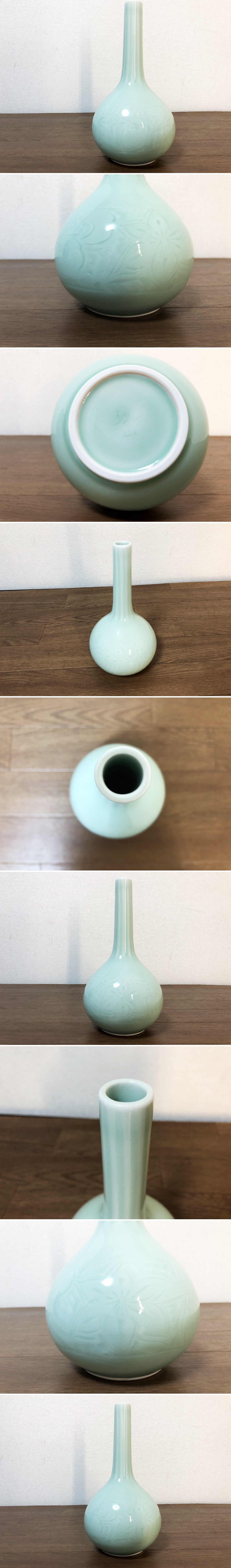 有田焼 琥山窯・花瓶・花器・一輪挿し青磁 未使用花器 花生 花入【商品詳細】 ■本体サイズ:幅135×高さ245×口径27(内20)mm ※採寸は目安程度でお考え頂き多少の誤差は了承下さい。 ■主観になりますがキレイです、個人差が御座います画像にて判断願います。 ■自宅の飾り棚に保管しておりました、未使用ですが専用箱などは御座いません。 ■ブランド名:有田焼琥山窯 ■カラー:青磁 ■素材:陶器 ■自宅保管品です、気になさる方はご遠慮下さい。 ■掲載している物が全てです画像にて判断下さい。 ■他気になる事など御座いましたらお気軽に質問下さい。(素人で判る範囲) (注意) 環境、モニター画面等により色合いが異なります。 【商品管理番号】888 |