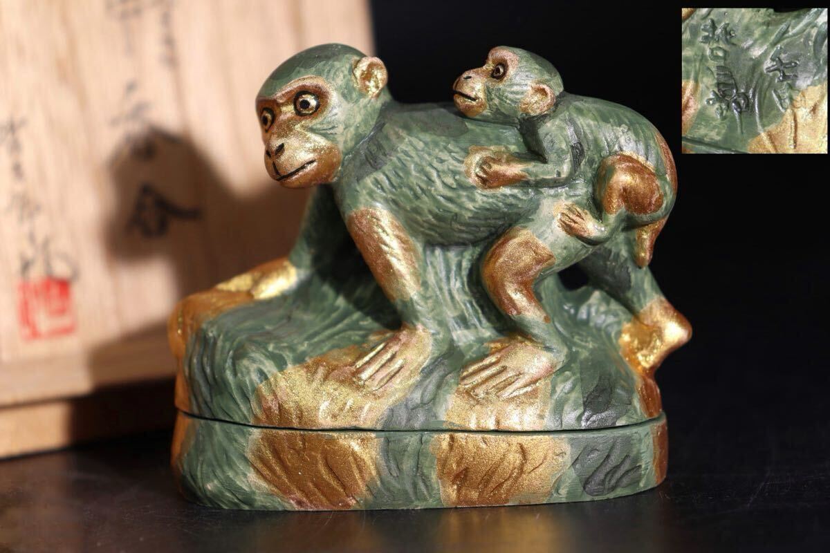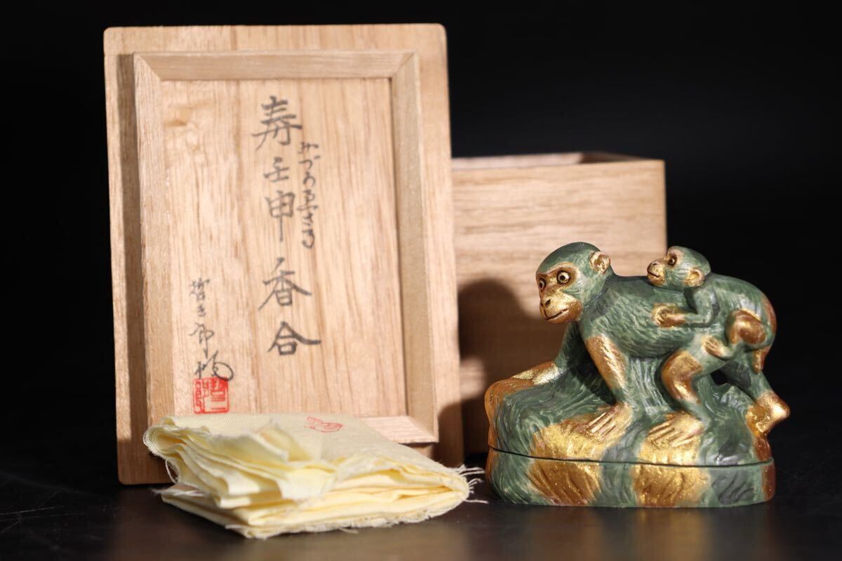 | 西頭哲三郎 作 「 寿 壬申 香合 」 共布・共箱付 / 博多人形師 金彩 香道具 煎茶道具 .G1642 |