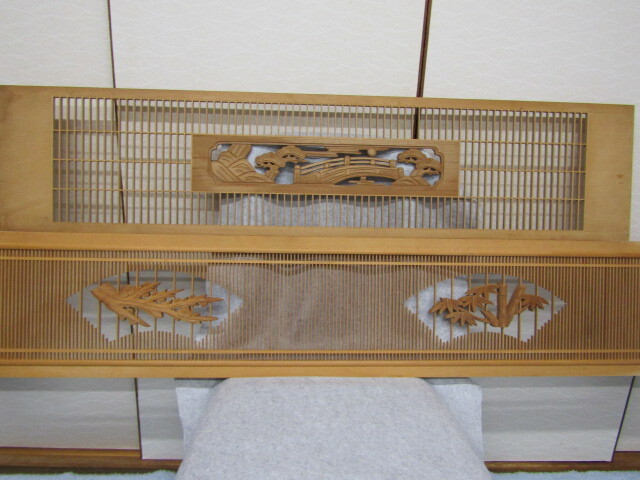 【Y】木製建具 インテリア 筬欄間 組子細工 大小 2枚 外枠なし Y5-0531-⑦◇