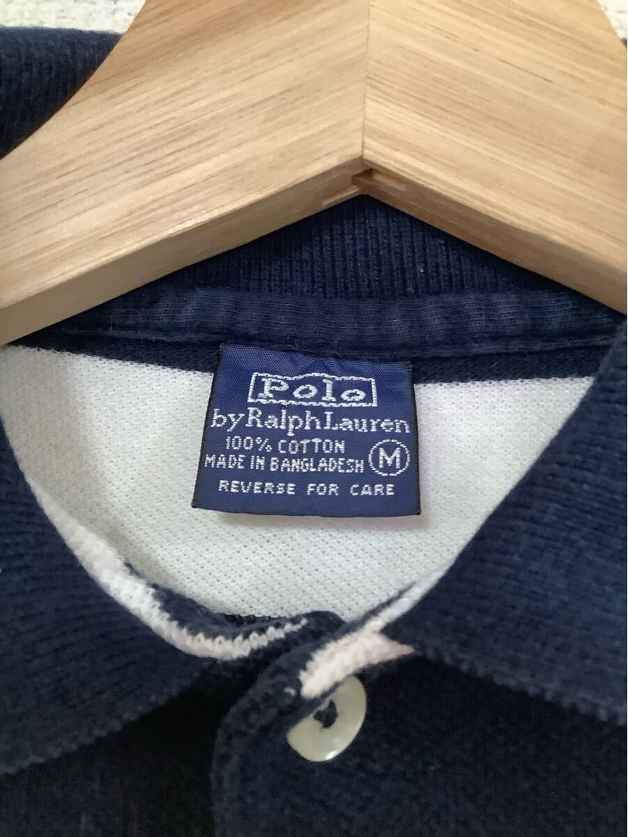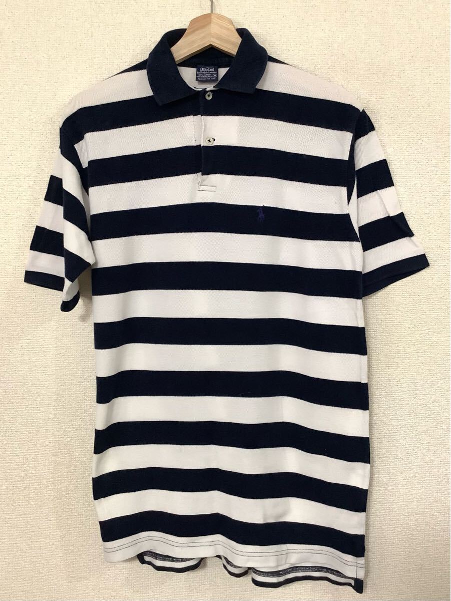 POLO RALPH LAUREN ラルフローレン ボーダー柄 半袖ポロシャツ ネイビー カジュアル アメカジ 古着 M
