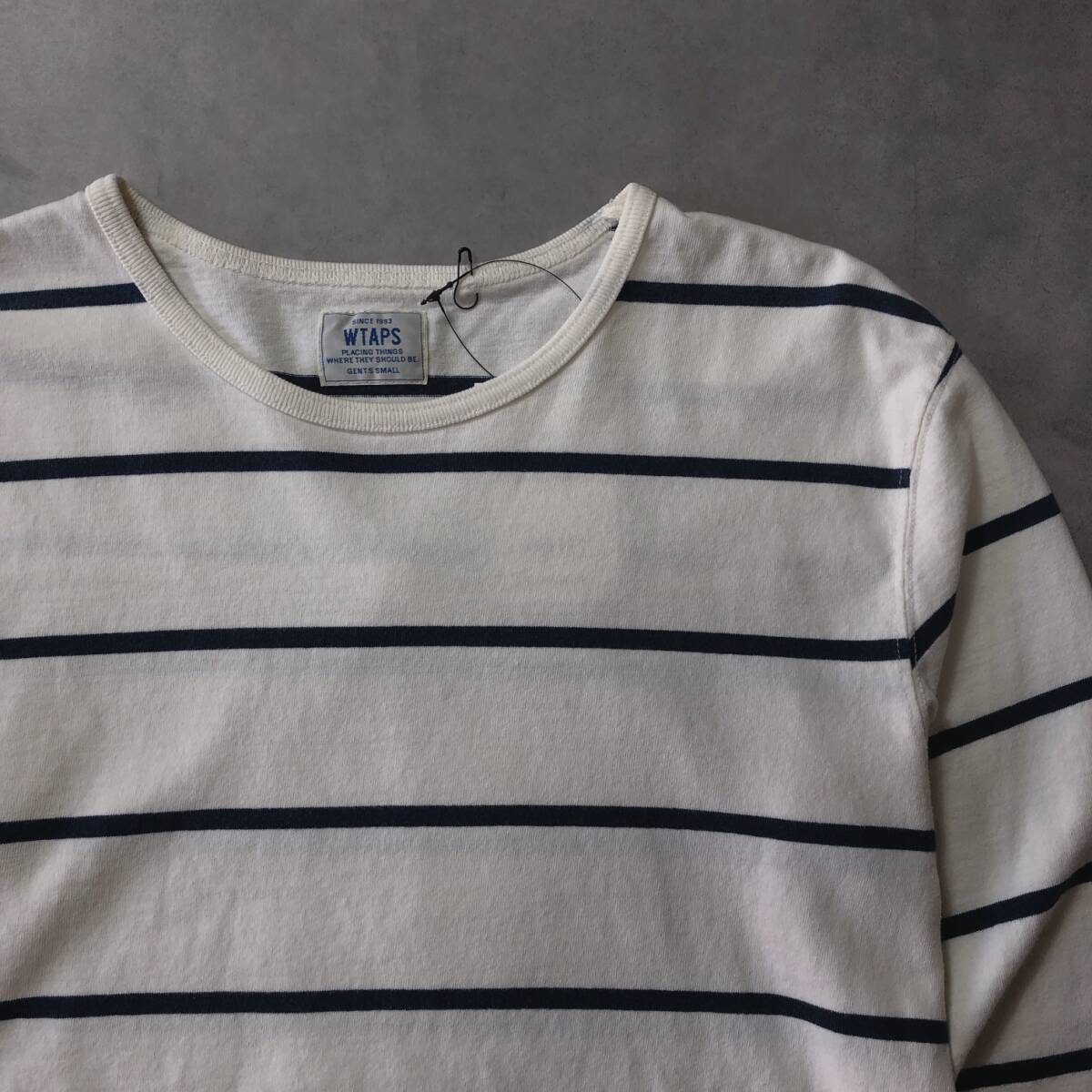 GQ2548◇WTAPS : VASQUE L/S◇S◇白/ネイビー ダブルタップス バスクシャツ 長袖Tシャツ