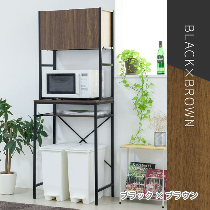 | キッチンボード カップボード 幅60 60cm 黒 白 シンプル 一人暮らし 下にゴミ箱 作業台 カウンター 横長 薄型 ワイド トースター 電子レンジ 扉付き オーブンレンジ |