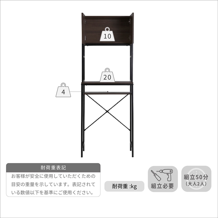| [天板]約20kg以下 [固定棚]約4kg以下 [扉固定棚]約10kg以下 |
