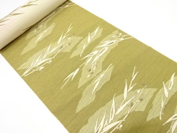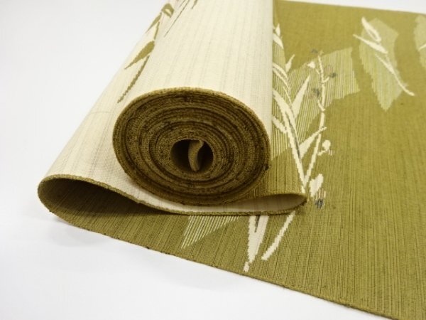 ys7418156; 破れ地紙に草葉模様 八寸帯地反物【アンティーク】【着】