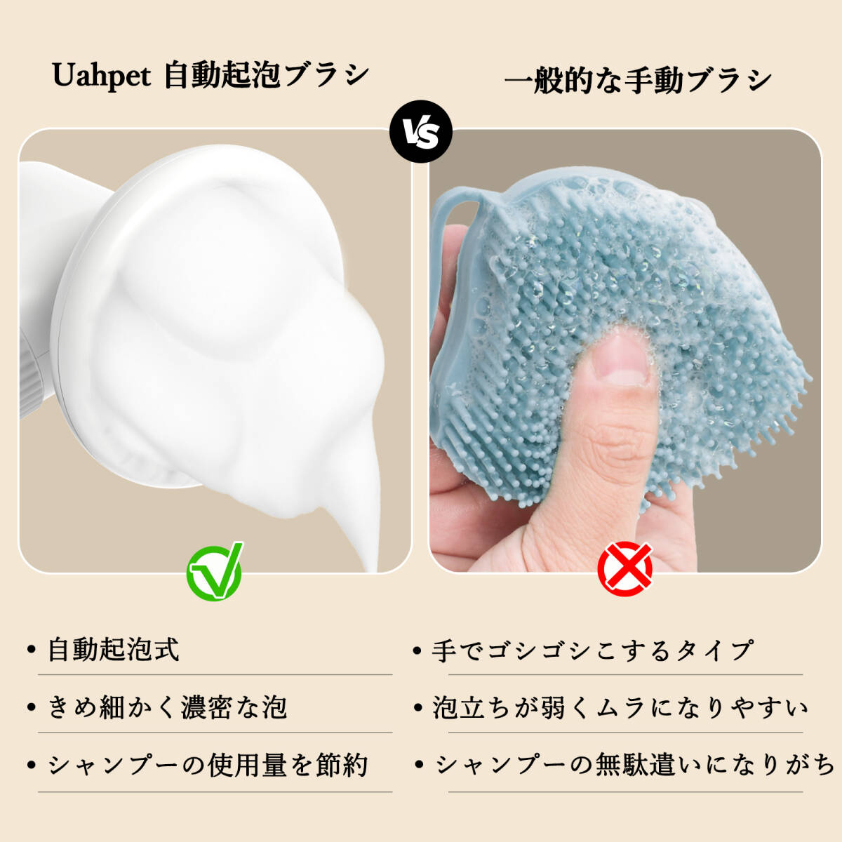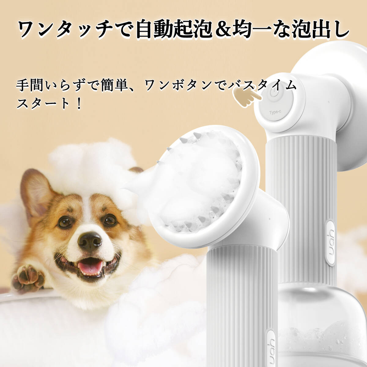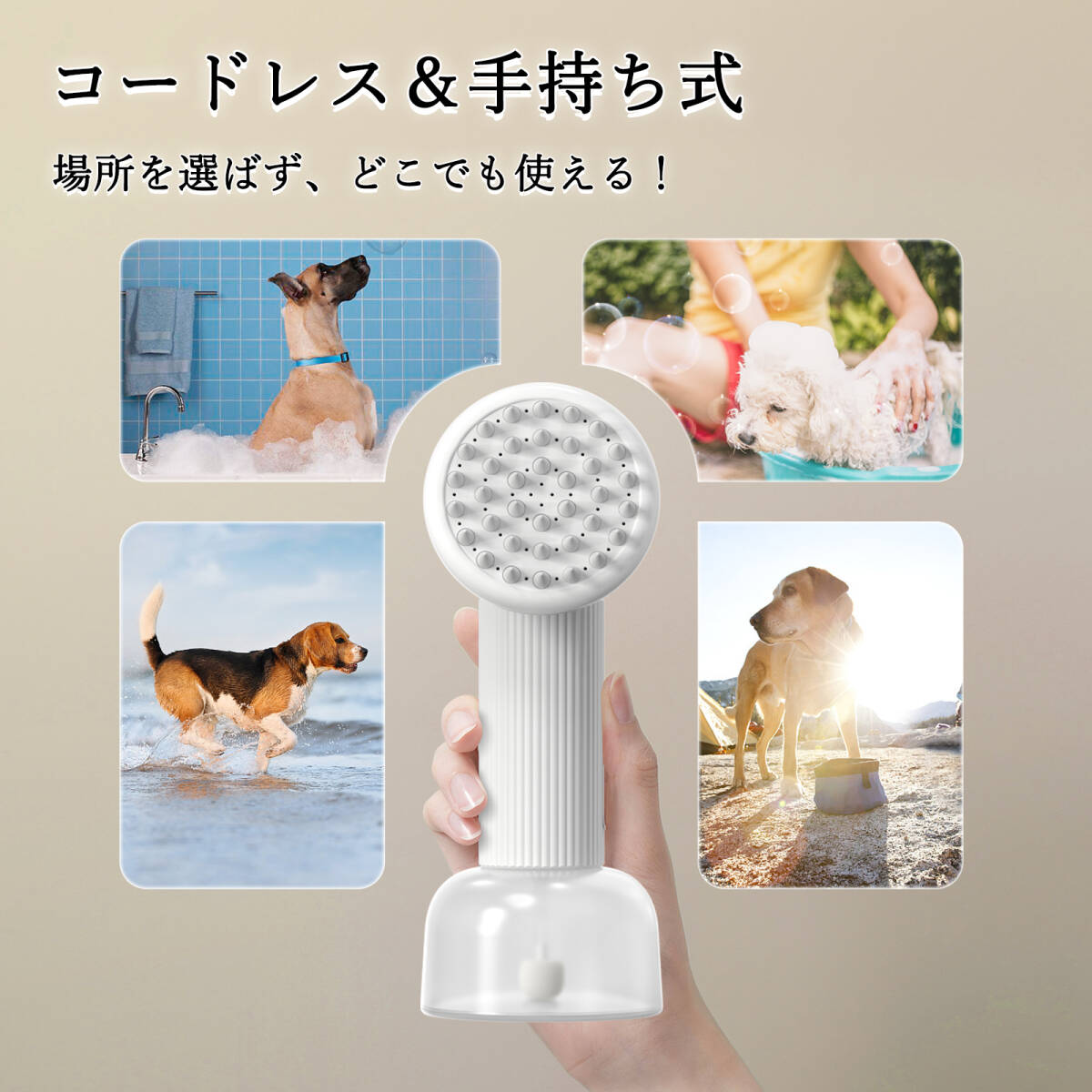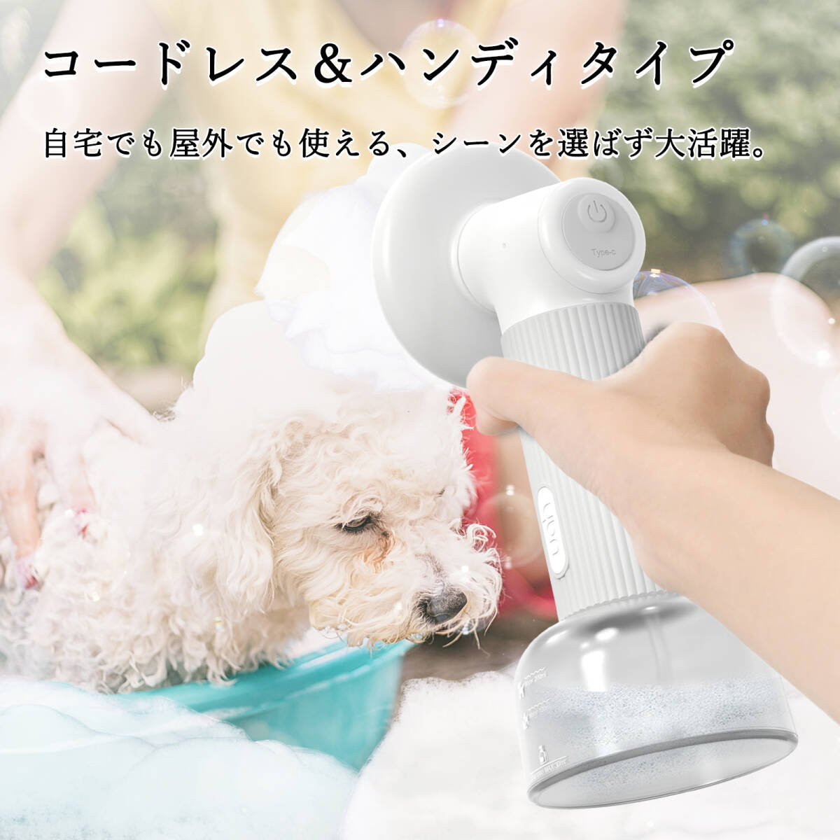 【新品・24時間発送】犬用自動泡ソープディスペンサー&バスブラシセット|USB充電式/防水設計/ペット用シャンプーブラシ/シリコン製