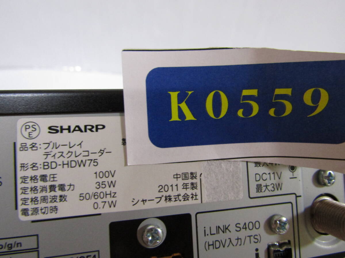 K0559 シャープブルーレイ BD-HDW75