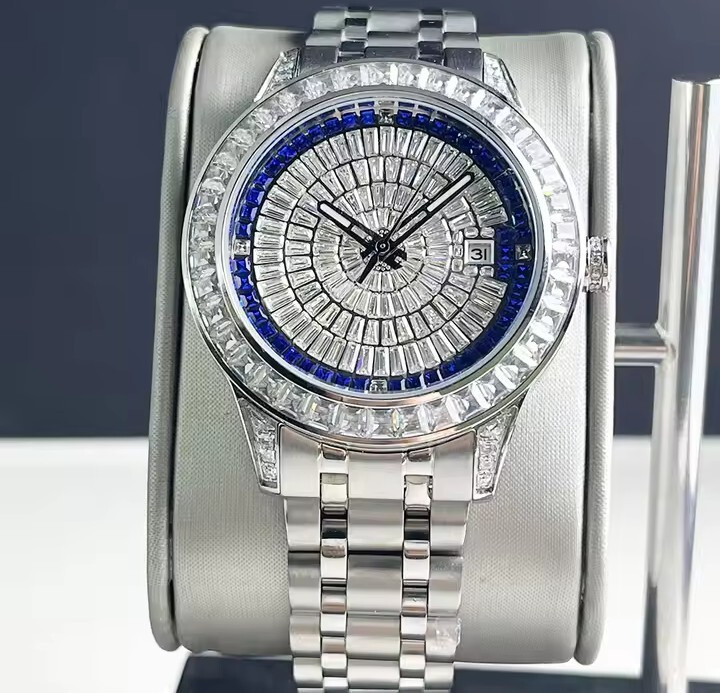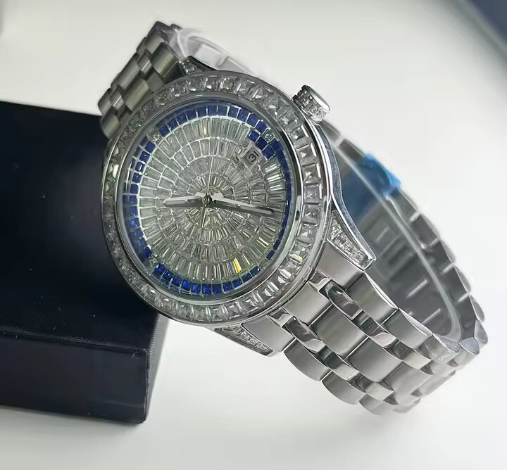 【新品未使用】自動巻き腕時計シルバーキラキラ青ビジネスウォッチ防水サファイアガラス機械式 シルバー