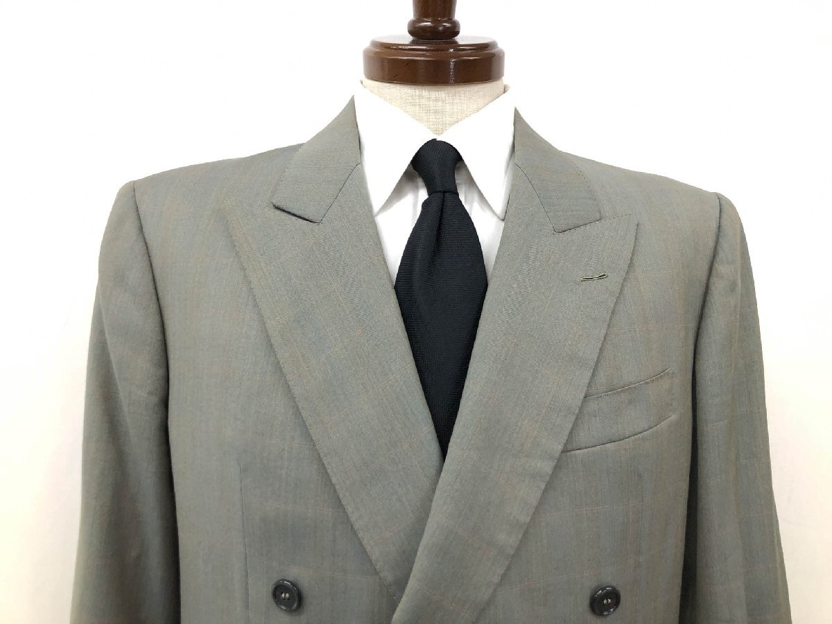美品【ANGELO ROMA アンジェロローマ 】 ダブル6ボタンスーツ (メンズ) size50~52相当 ライトグレー系 チェック織柄 ◯33RMS1377○
