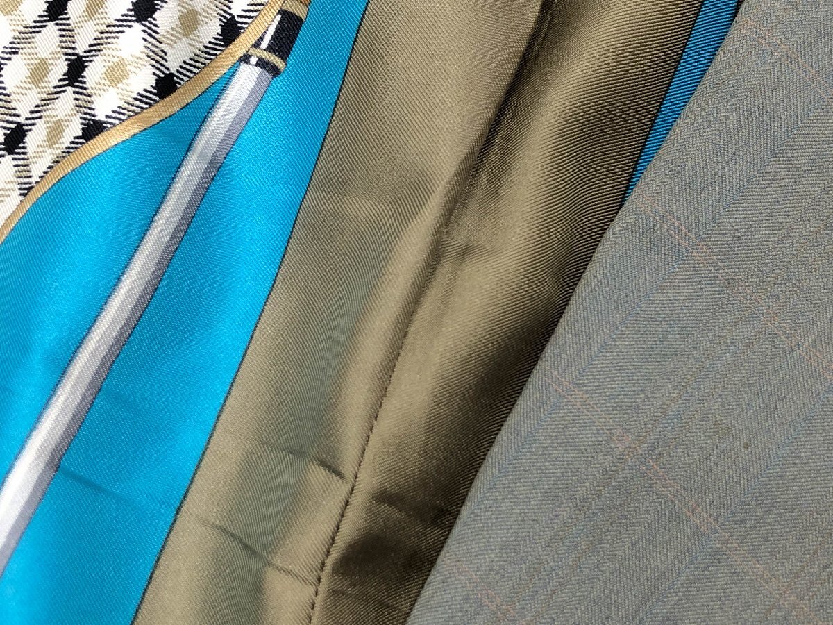 ・多少の着用感、多少のスレ、ジャケット袖裏地とスラックス裏地とに薄いシミ汚れ、スラックス左裾に小さな汚れ、ジャケット裏地に小さな汚れが点々としていますが、それ以外の状態は美品です♪