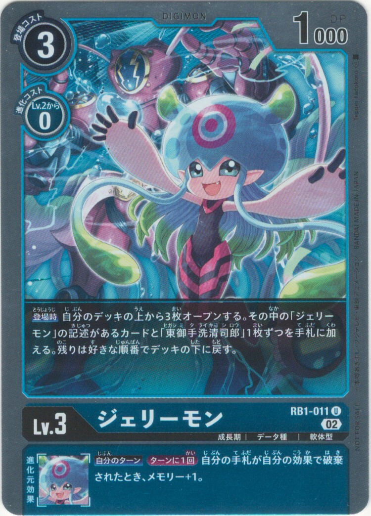 ジェリーモン(BOX購入特典/パラレル)〔U〕【青/Lv.3/RB1-011】〈ライジングウインド RB1〉