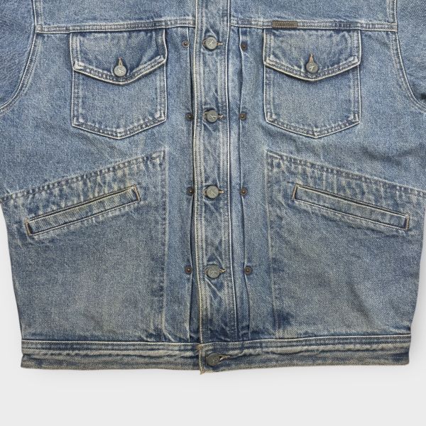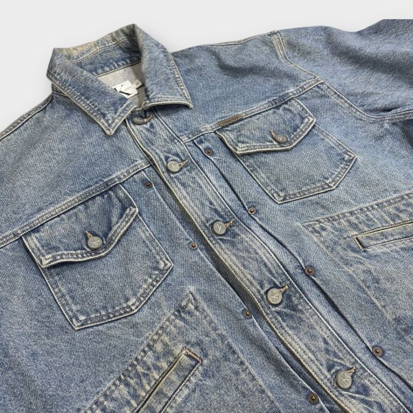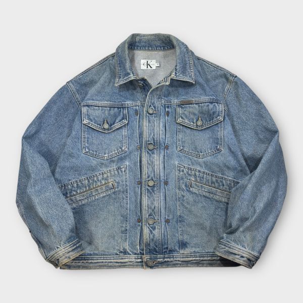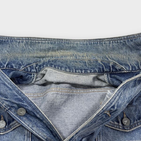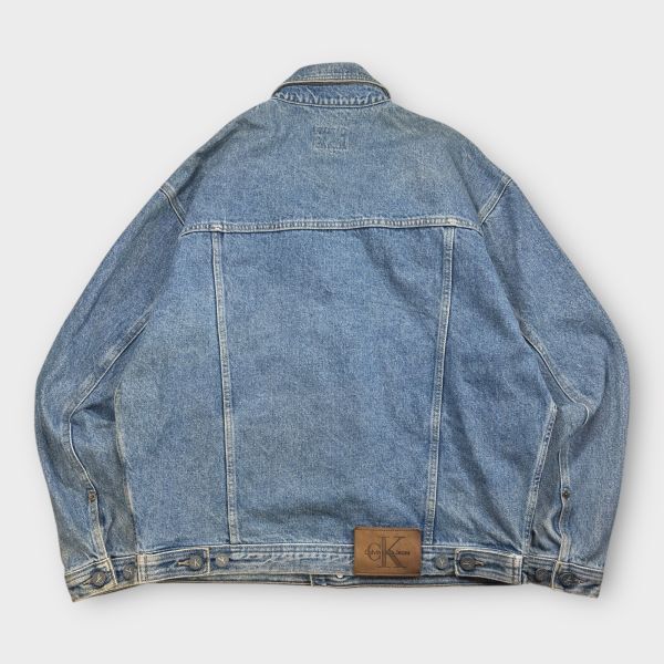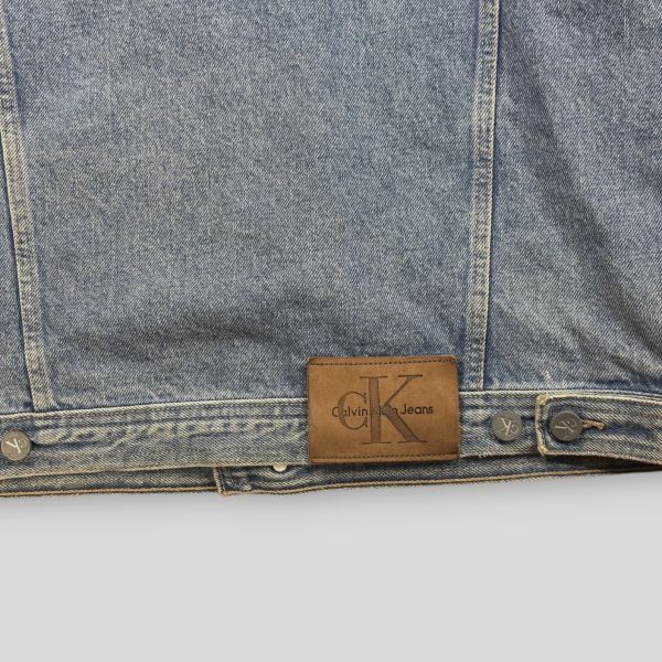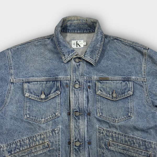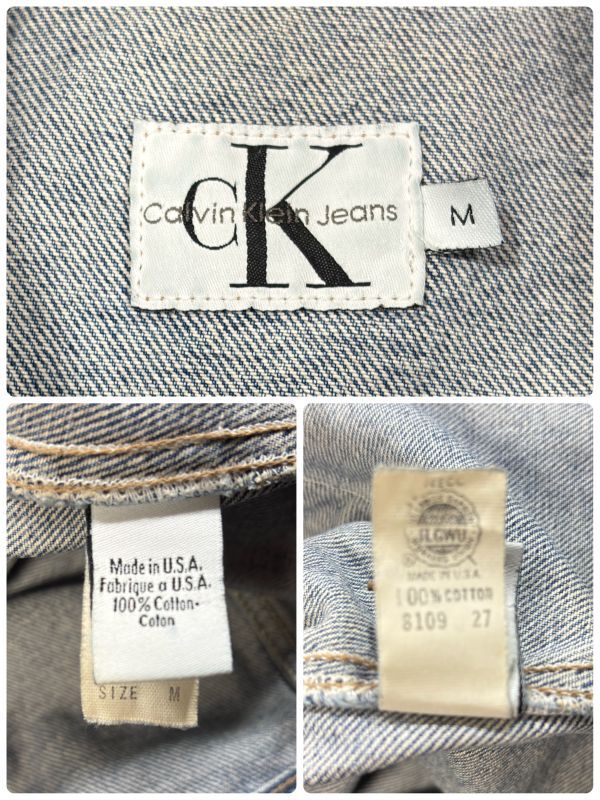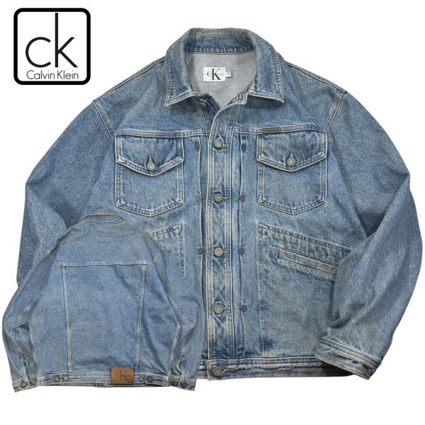 ★90'S USA製★CK Calvin Klein Jeans★Gジャン トラッカージャケットsizeM ロゴ刻印ボタン 裾本皮パッチ ピンタック Y2K 古着 クリーニング プレス済み sn299