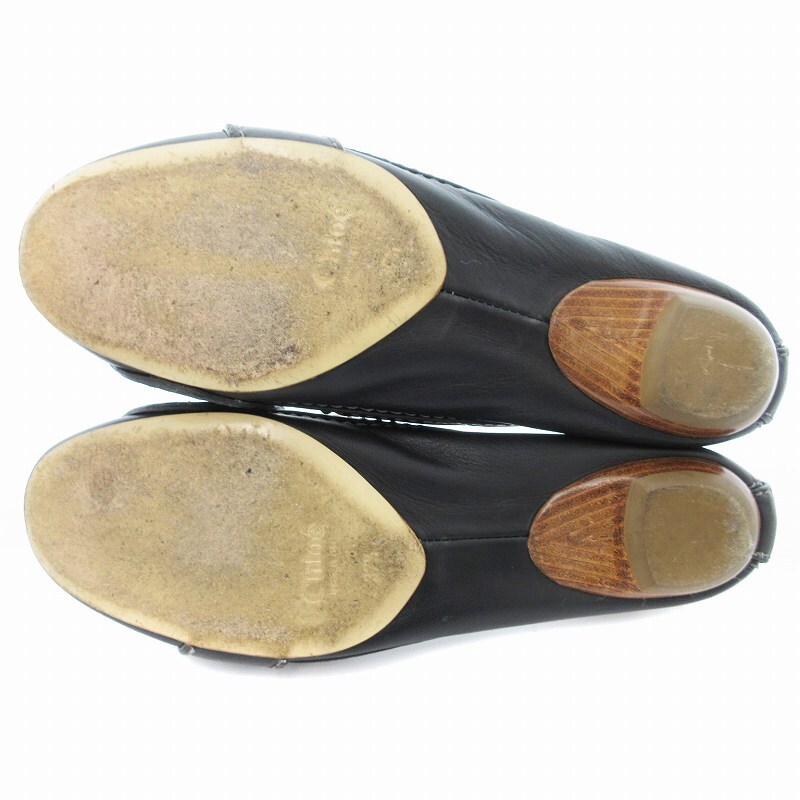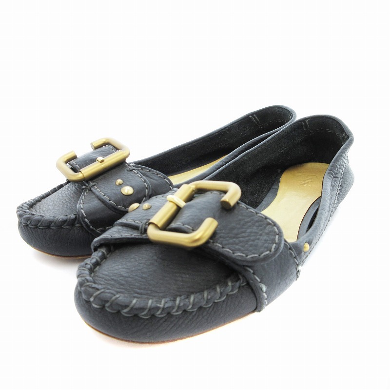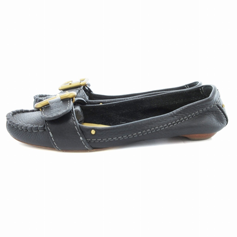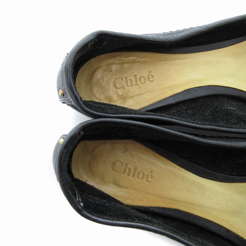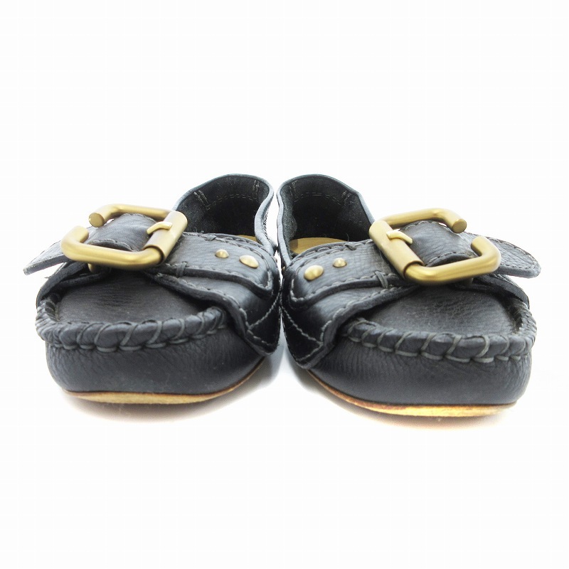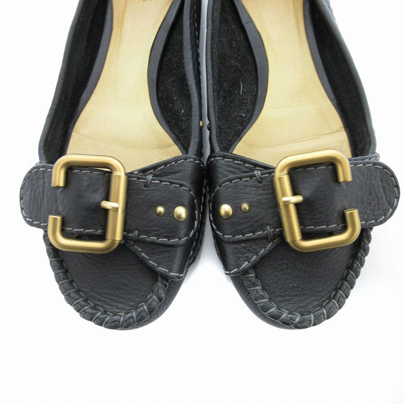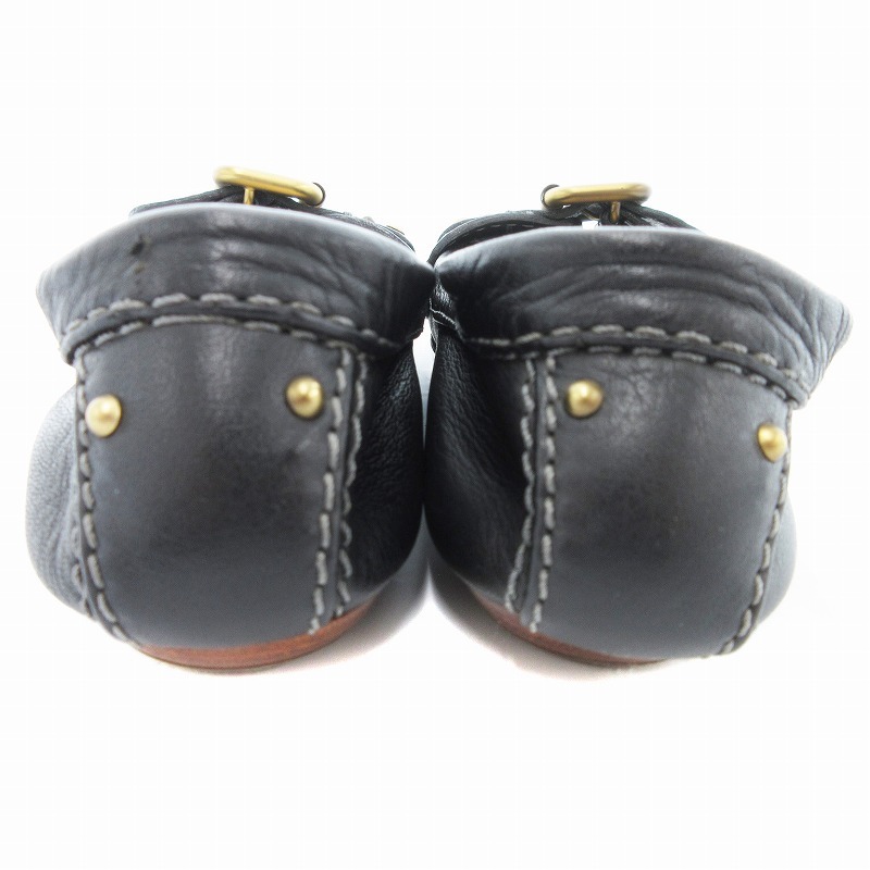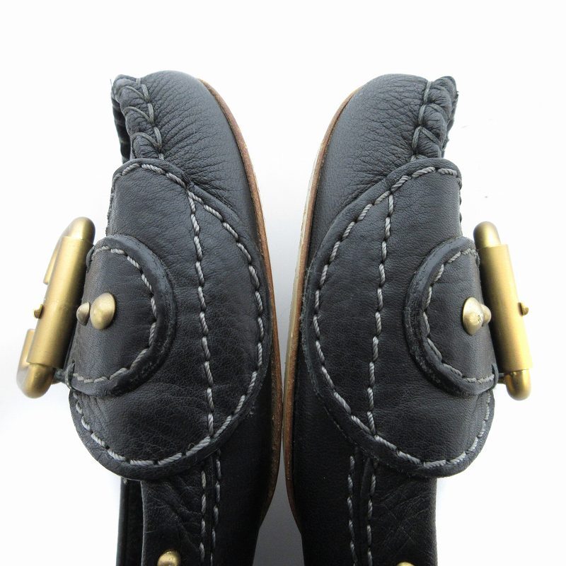 クロエ CHLOE フラットパンプス ベルトデザイン レザー 37.5 黒 ブラック /JS レディース