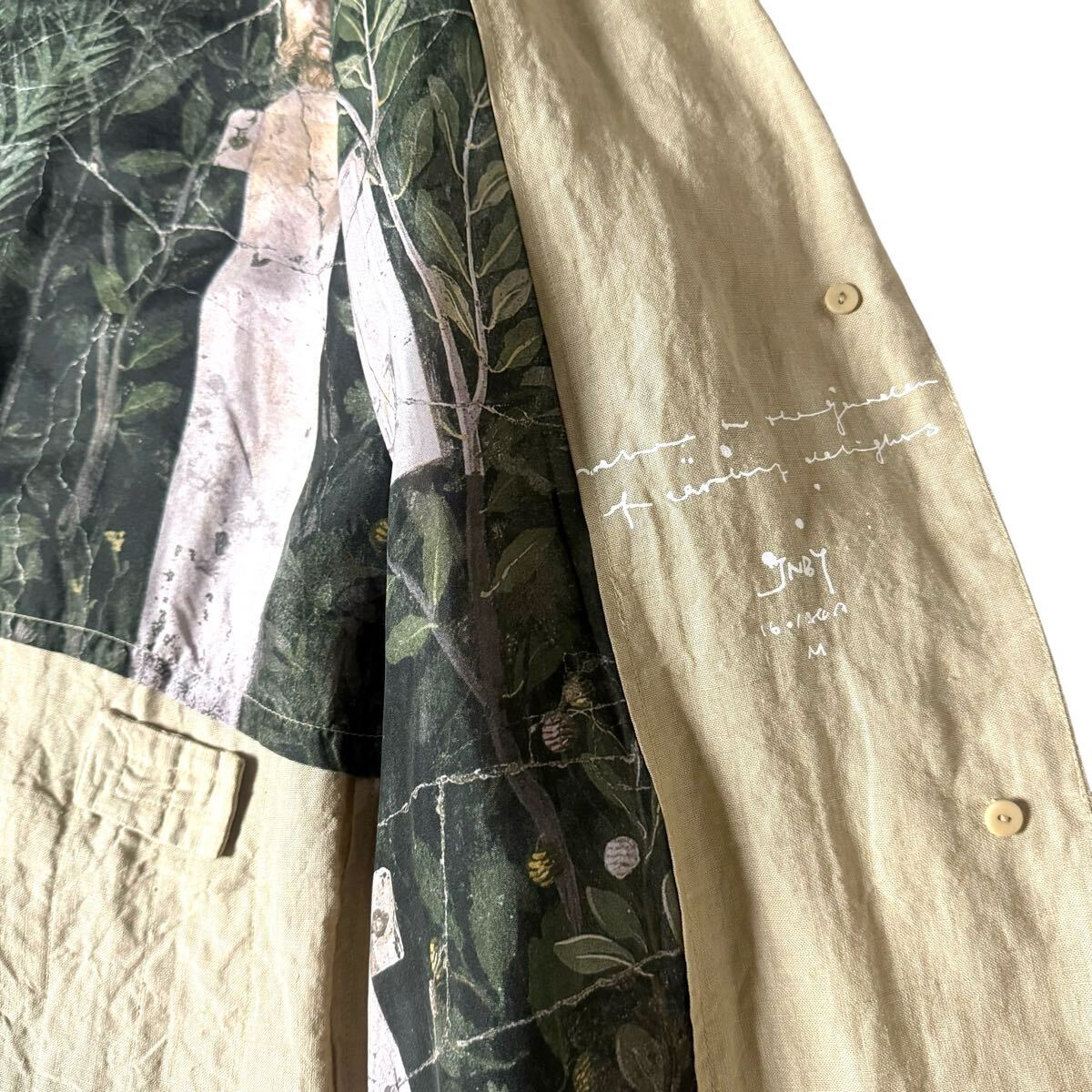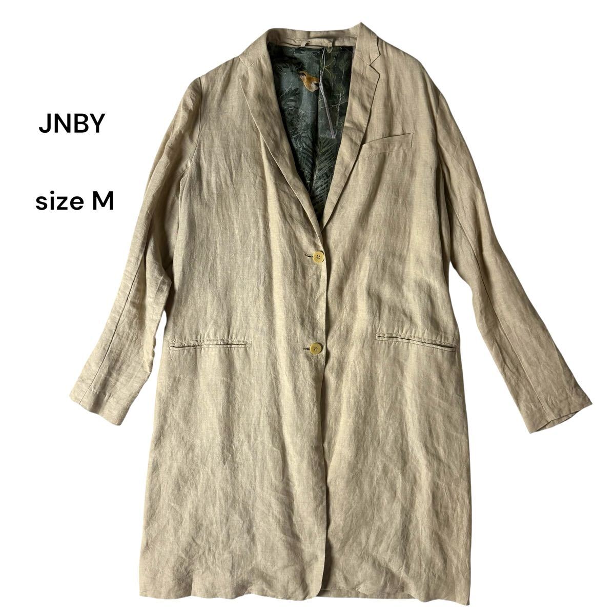 美品 JNBY 背抜き リネン 麻 シルク 絹 コート ベージュ ジェーエヌビーワイ レディース サイズ M