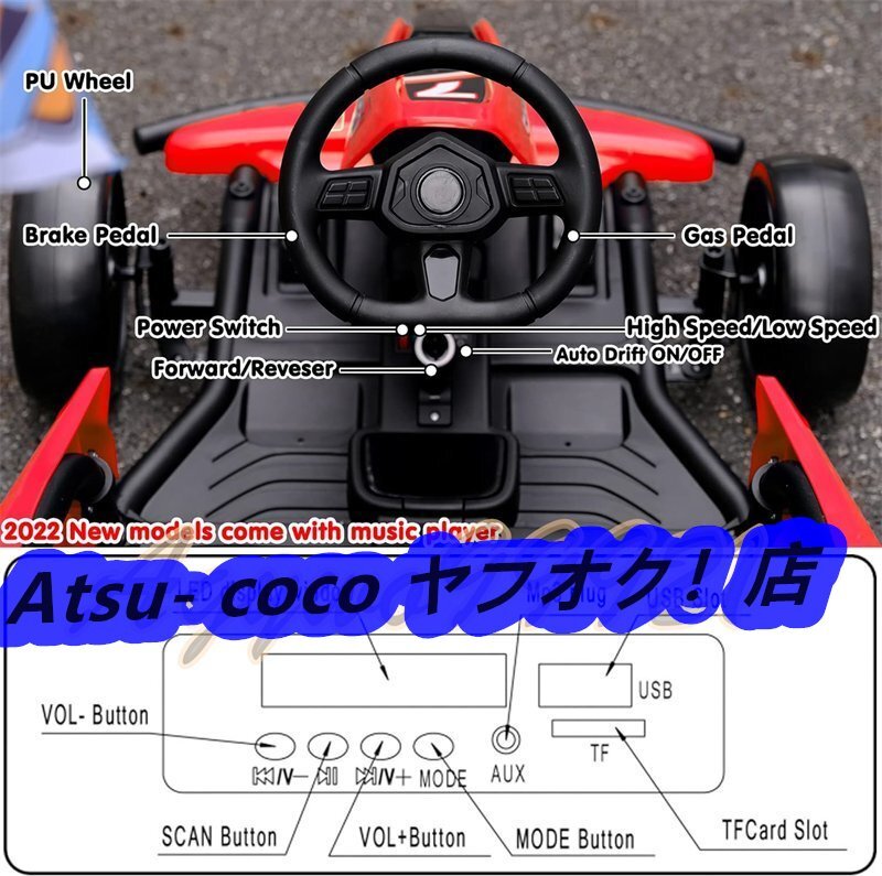 【ご注意】この子供用カートはリモコンなしでカートに入れます。速度は最大5.6~7.5mphです。運転中は膝蓋骨や袖口などのセキュリティを割り当てることをお勧めします (パッケージにはセキュリティ割り当ては含まれていません)。