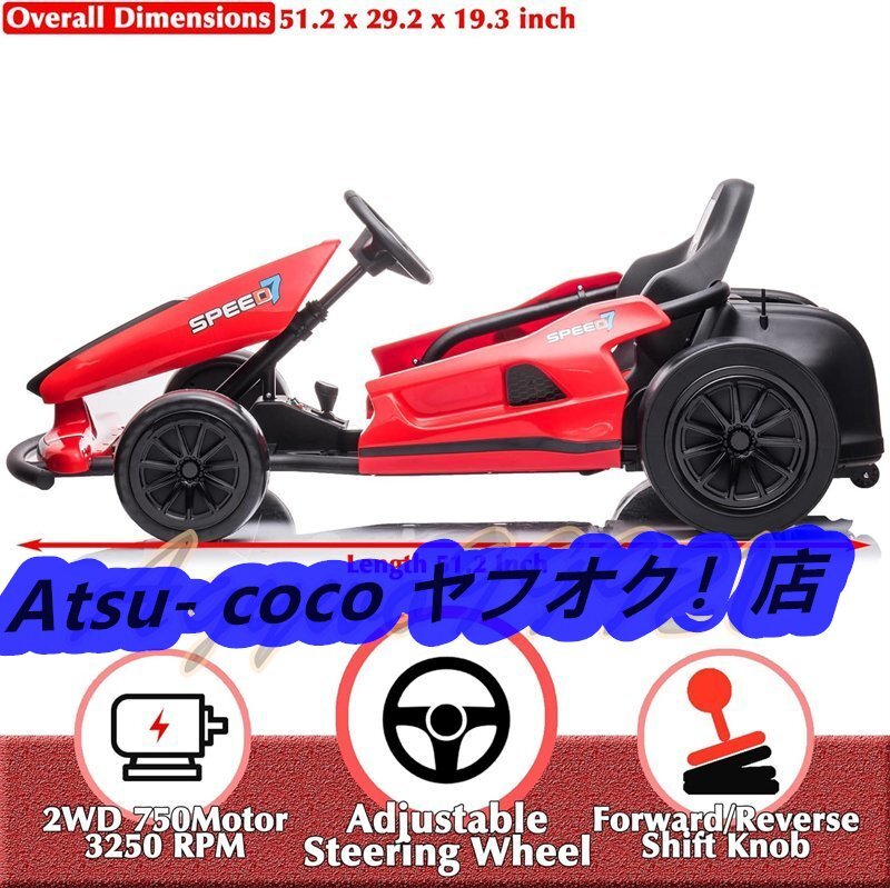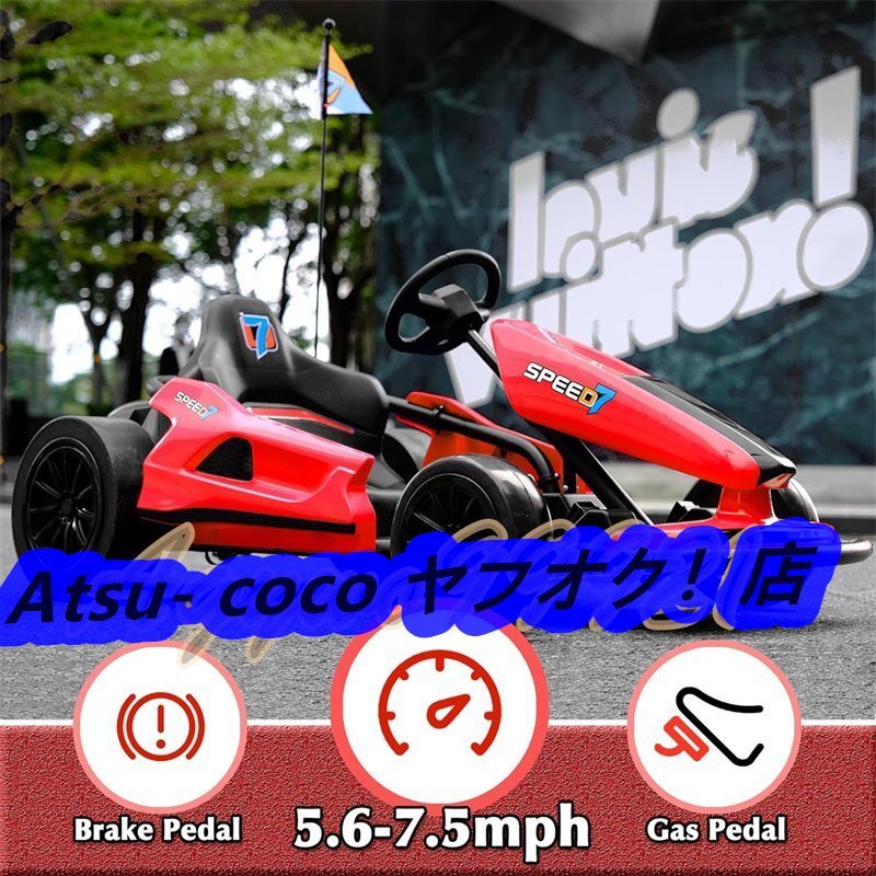 24V 電動ドリフトカート 7.5MPH 高速ゴーカート 子供用 6歳以上 バッテリー駆動 乗用車 おもちゃ 2WD 電動ゴーカート 音楽再生 レッド