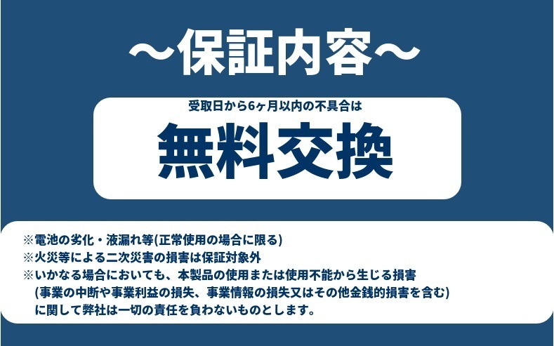◎電池の劣化・液漏れ等…6ヶ月間(正常使用の場合に限る)