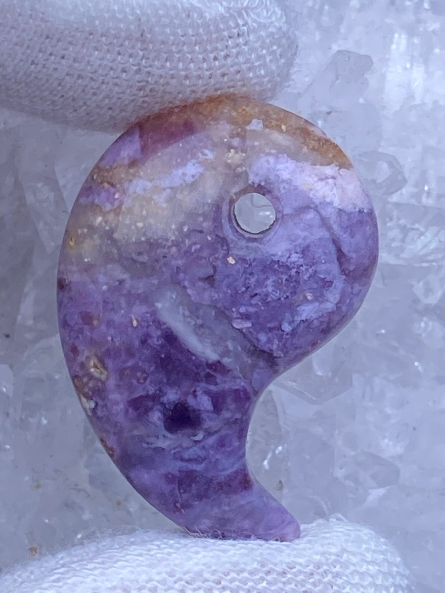 新品未使用 □□□□□□□□□□□□□□□□□□□□ サイズ ■約:【重さ】6 g ■原産国:アメリカ ティファニーストーンは、アメリカ.ユタ州のトーマス山脈周辺でのみ産出される希少な石です。主にフローライトがオパール化石化したもので、さらにカルセドニーやロードナイトが混合したものがあり、構成している石の成分によって、紫色、白、黒、ピンクなどの様々なカラーがある面白い石です。 鉱山の岩石の空洞の中で鉱物の成分が豊富に含まれる地下水が、火山の熱で循環し沈澱を繰り返す過程で生まれたものではないかと考えられています。 名前の由来は、有名な宝石ブランド、ティファニー社の創業者の子息“ルイス.カムフォート.ティファニー”が描いた絵が、この石の模様や色合いと似ていた事から名付けられました。 ティファニーストーンの意味:【自己能力を高める】【インスピレーションを高める】【感性.感覚を鋭くする】【集中力を高める】【固定観念を外して視野を広める】【想像力を刺激する】【自由な発想力を生む】 □□□□□□□□□□□□□□□□□□□□ ◆◆必ずお読み下さい◆◆ ■傷、凹み、サイズの不揃い等がある場合があります。 天然石のため傷、クラック(内部の割れ)、インクルージョン(内部の気泡や不純物)、 ブレスレットの玉のサイズに若干の不揃いがある場合があります。 ■写真と実物の色味が異なることがあります。 出品物は全てライトの下で撮影しており、またご使用のディスプレイ等の違いにより実物の色と違って見えることがあります インターネット上での取引の特性上ご了承ください。 上記をお読みいただいた上で、ご理解のいただける方のみ、ご入札ください。 ご理解をいただけず、上記の理由で評価をされた方は、当方のオークションへの参加を制限させていただく場合があります。 あらかじめご承知おきいただきますようお願いいたします。 ■写真の品物をお届けいたします。 ご入札をお待ちしております。 |