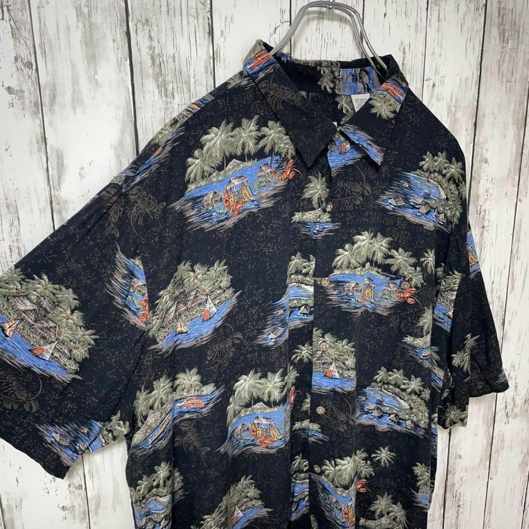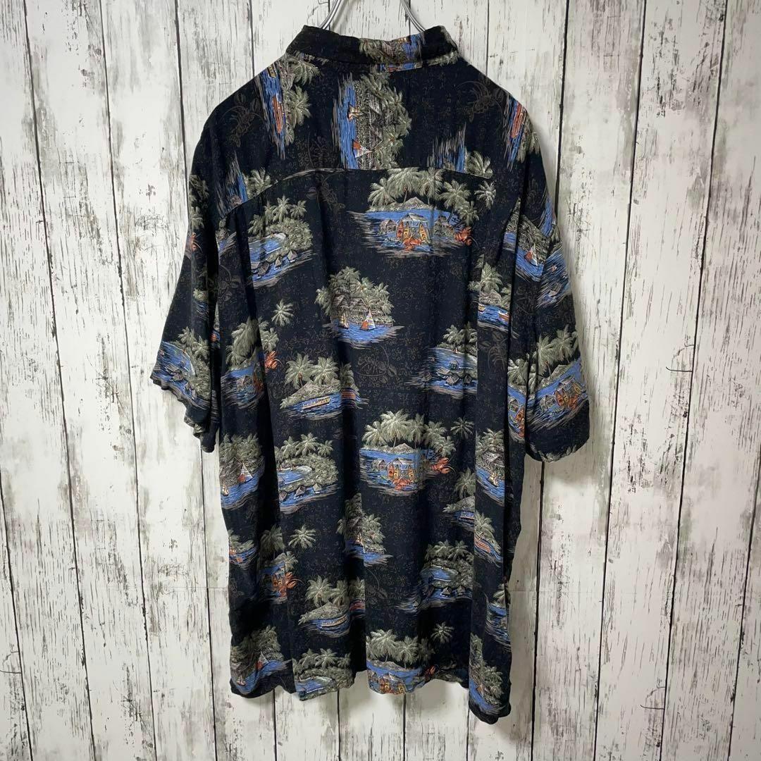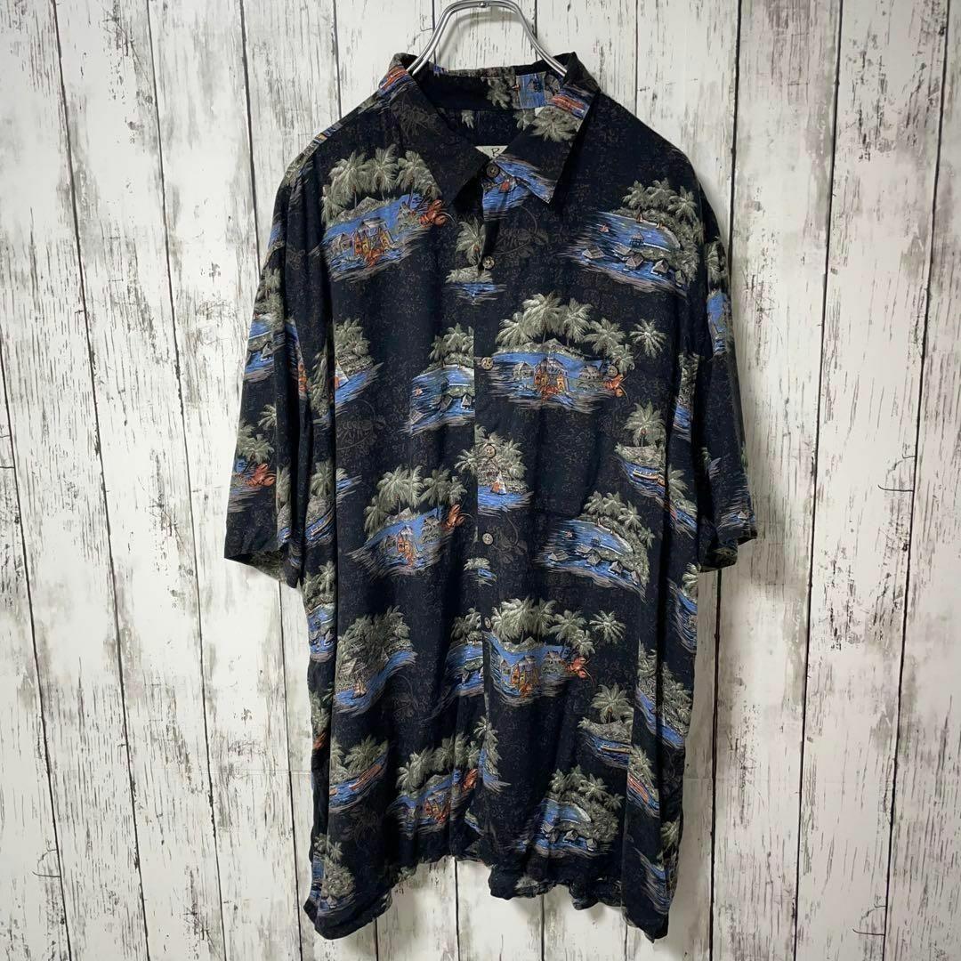 □タイプ:アロハシャツ ハワイアンシャツ 半袖シャツ ビッグシルエット オーバーサイズ 大きいサイズ アメリカ古着 米国サイズ ブラック メンズ