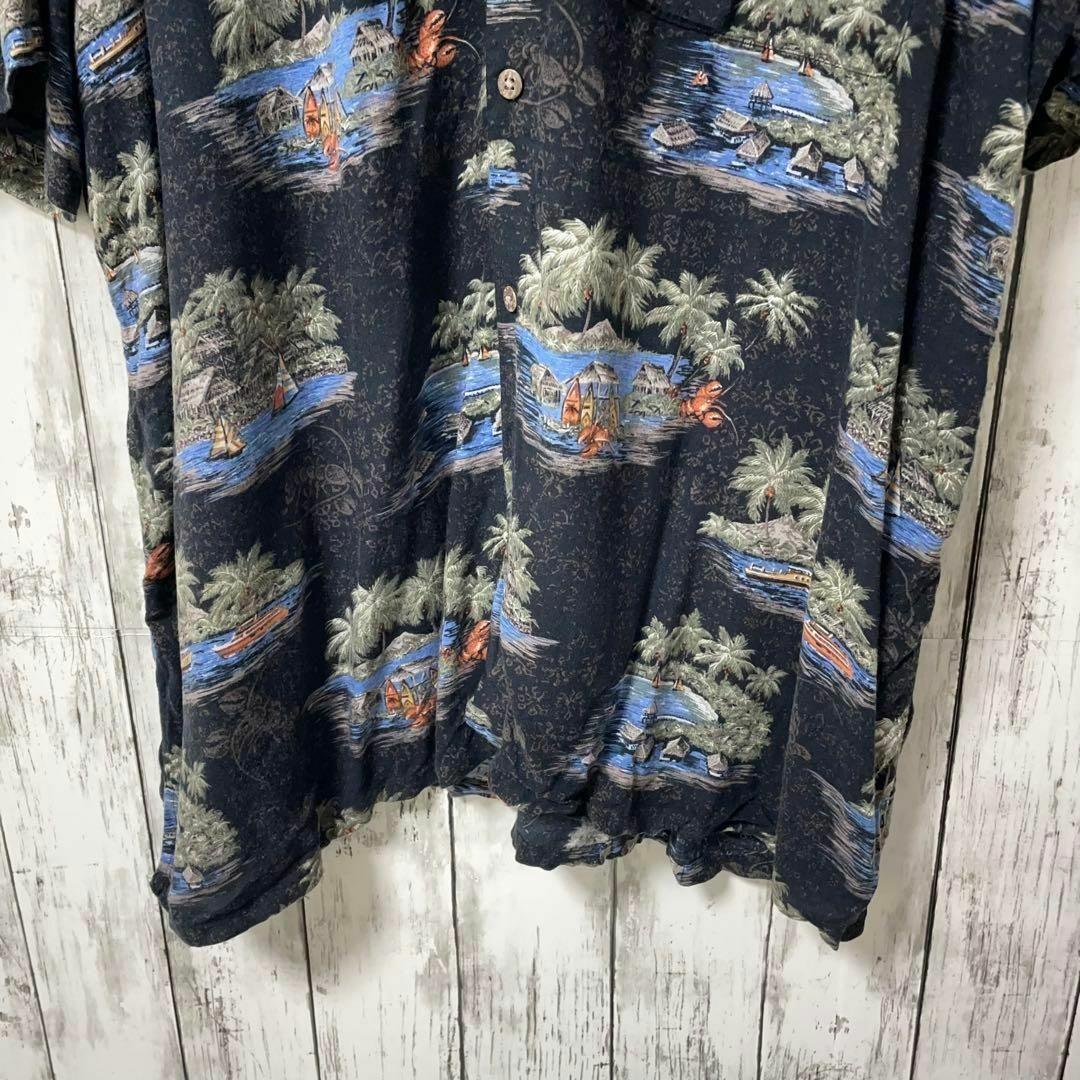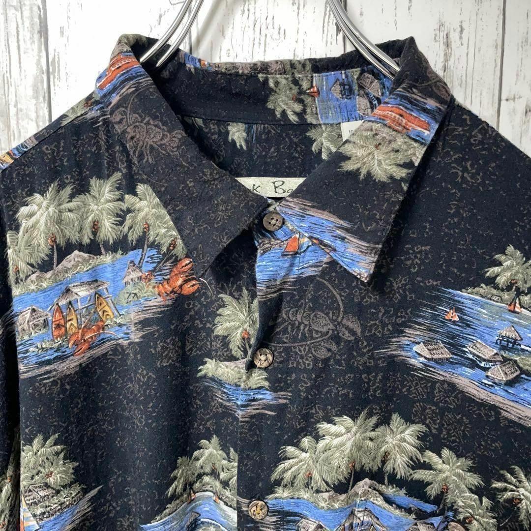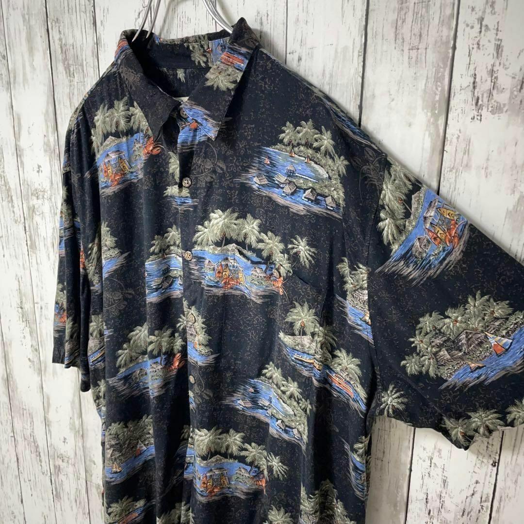 □タイプ:アロハシャツ ハワイアンシャツ 半袖シャツ ビッグシルエット オーバーサイズ 大きいサイズ アメリカ古着 米国サイズ ブラック メンズ