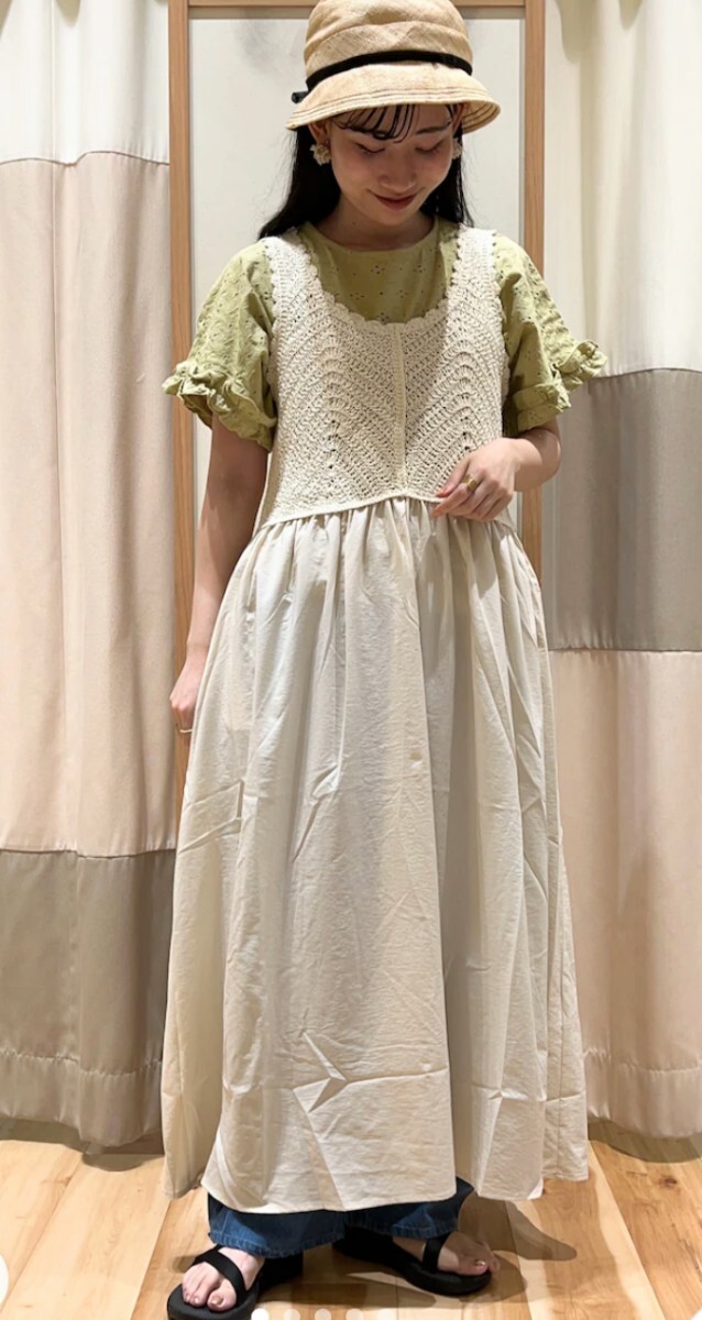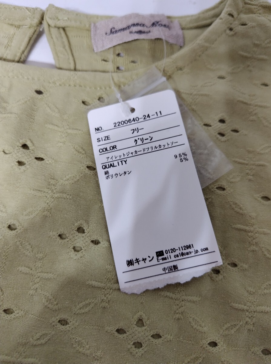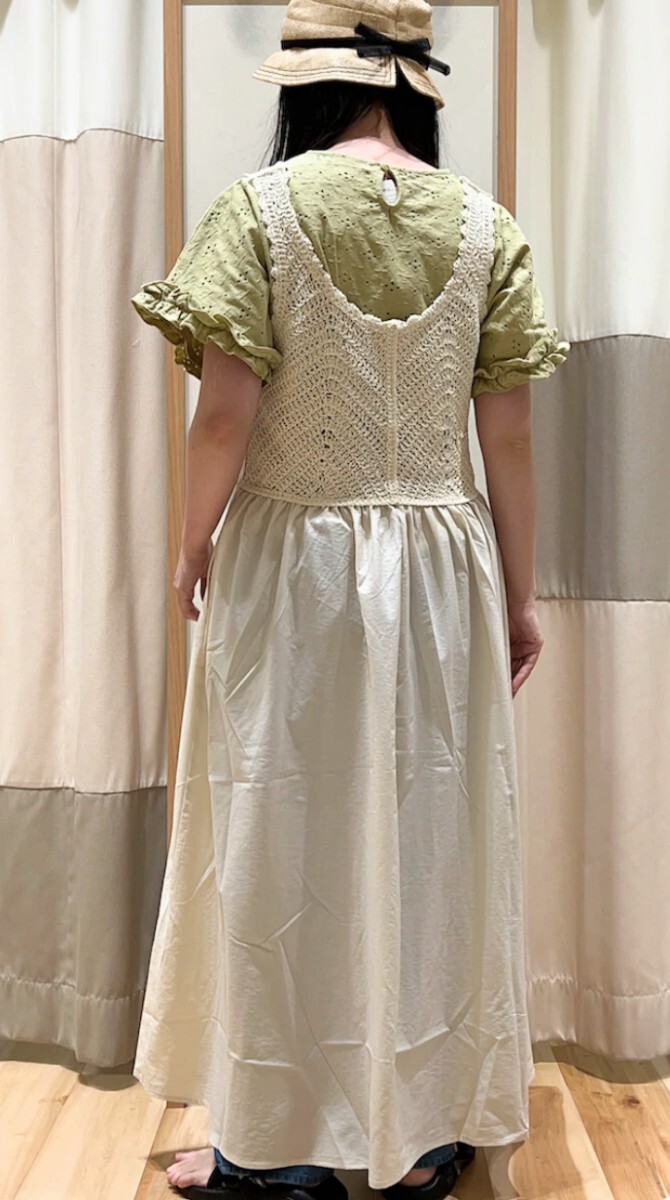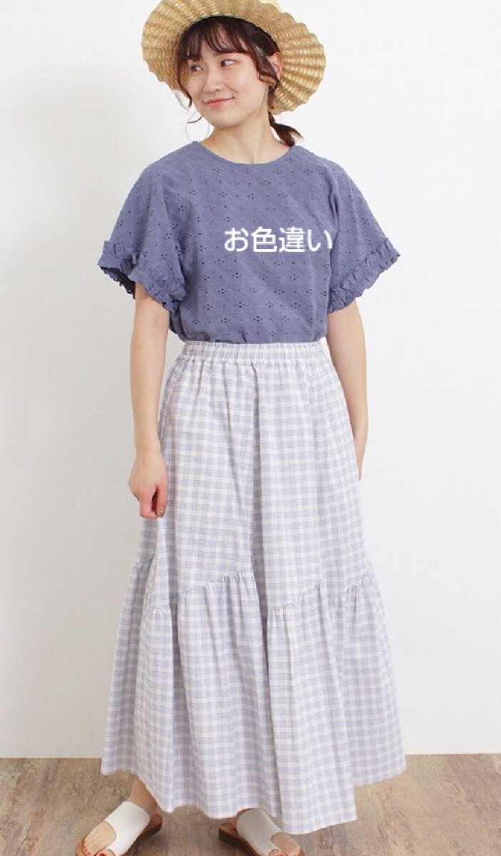 壁紙のような柄がかわいい オリジナルのデザインのアイレット素材を使用しました。 袖口に付いた共布フリルが腕をすっきり見せてくれます。 ゆったりとしたシルエットでリラックスして着られるアイテムです。